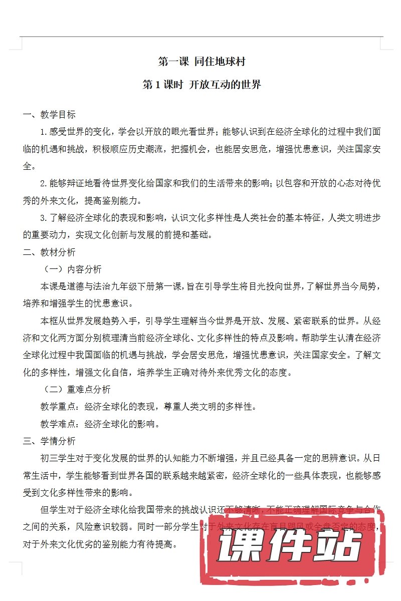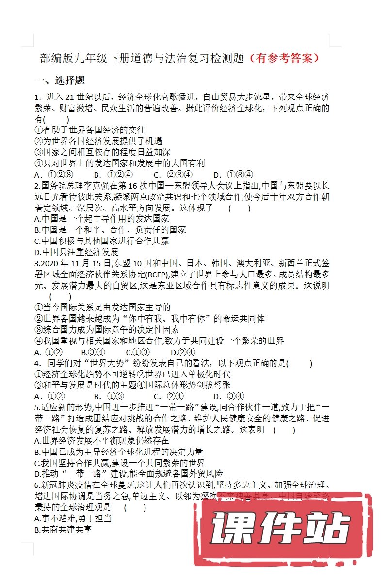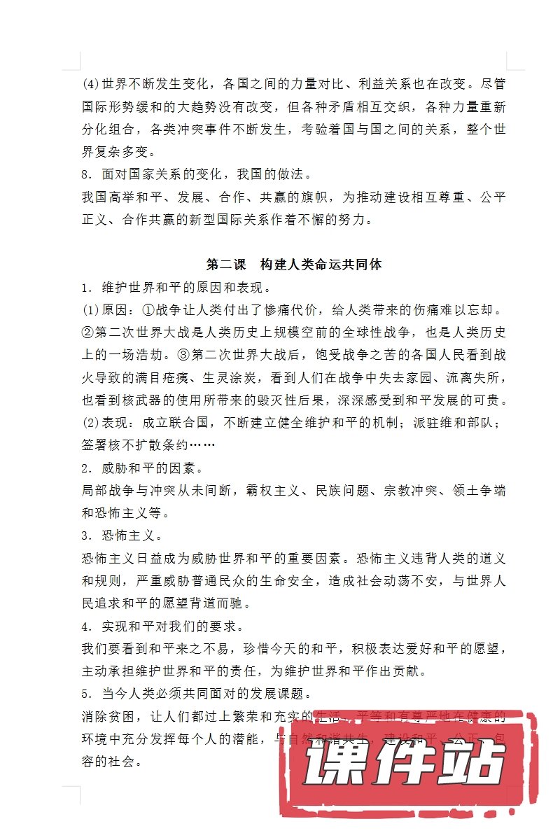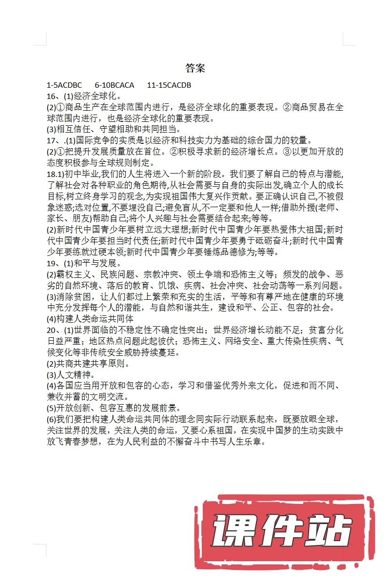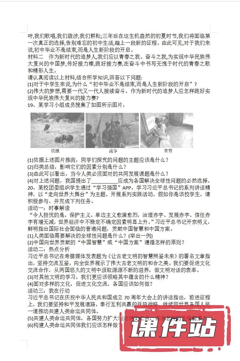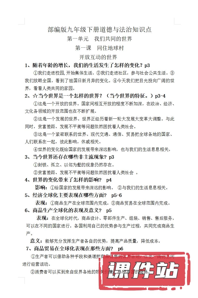 【打包下载】部编版九年级道德与法治下册教学资源