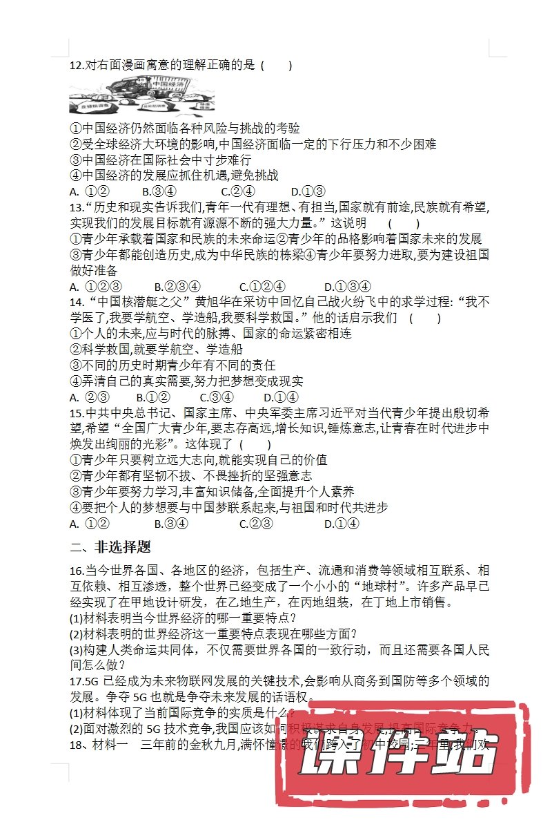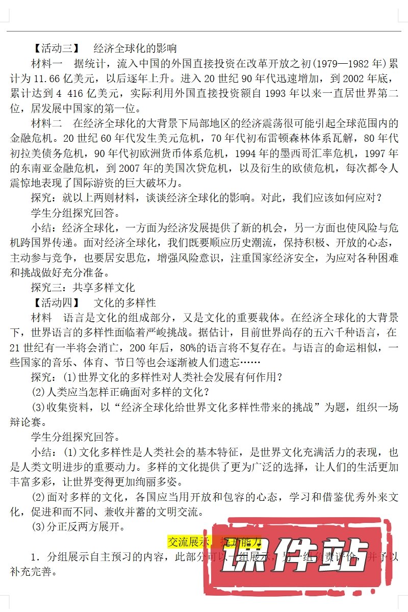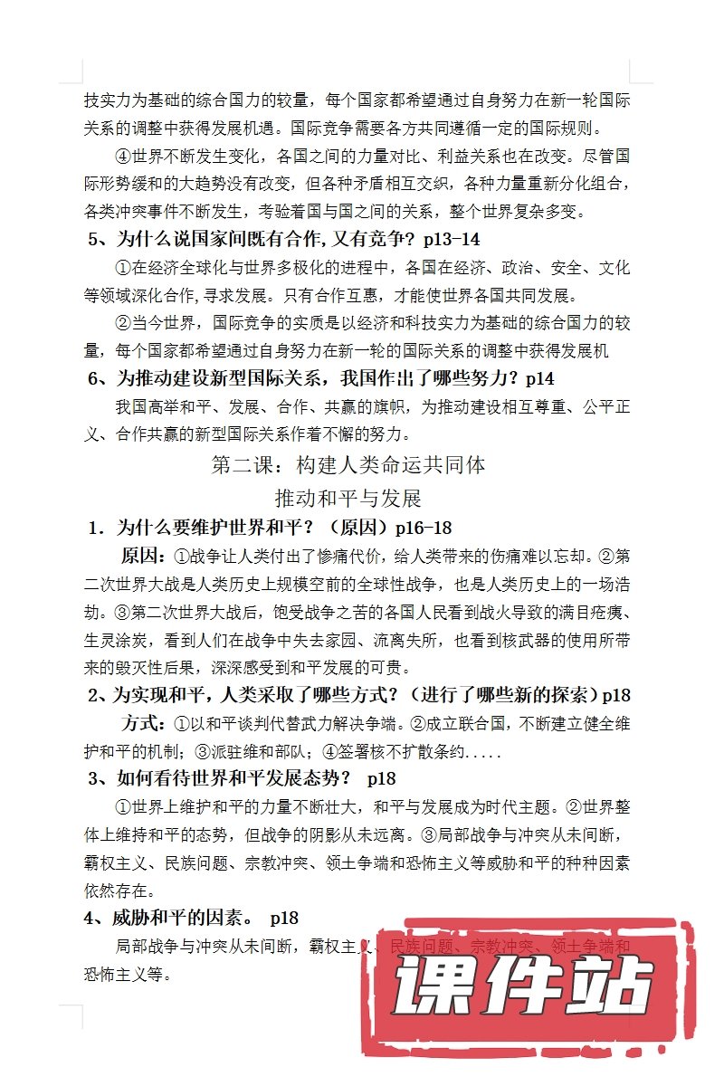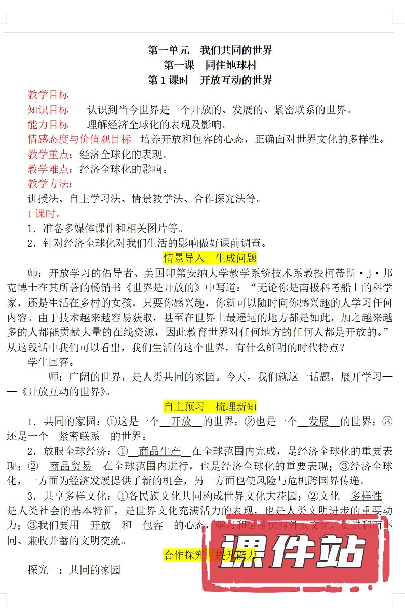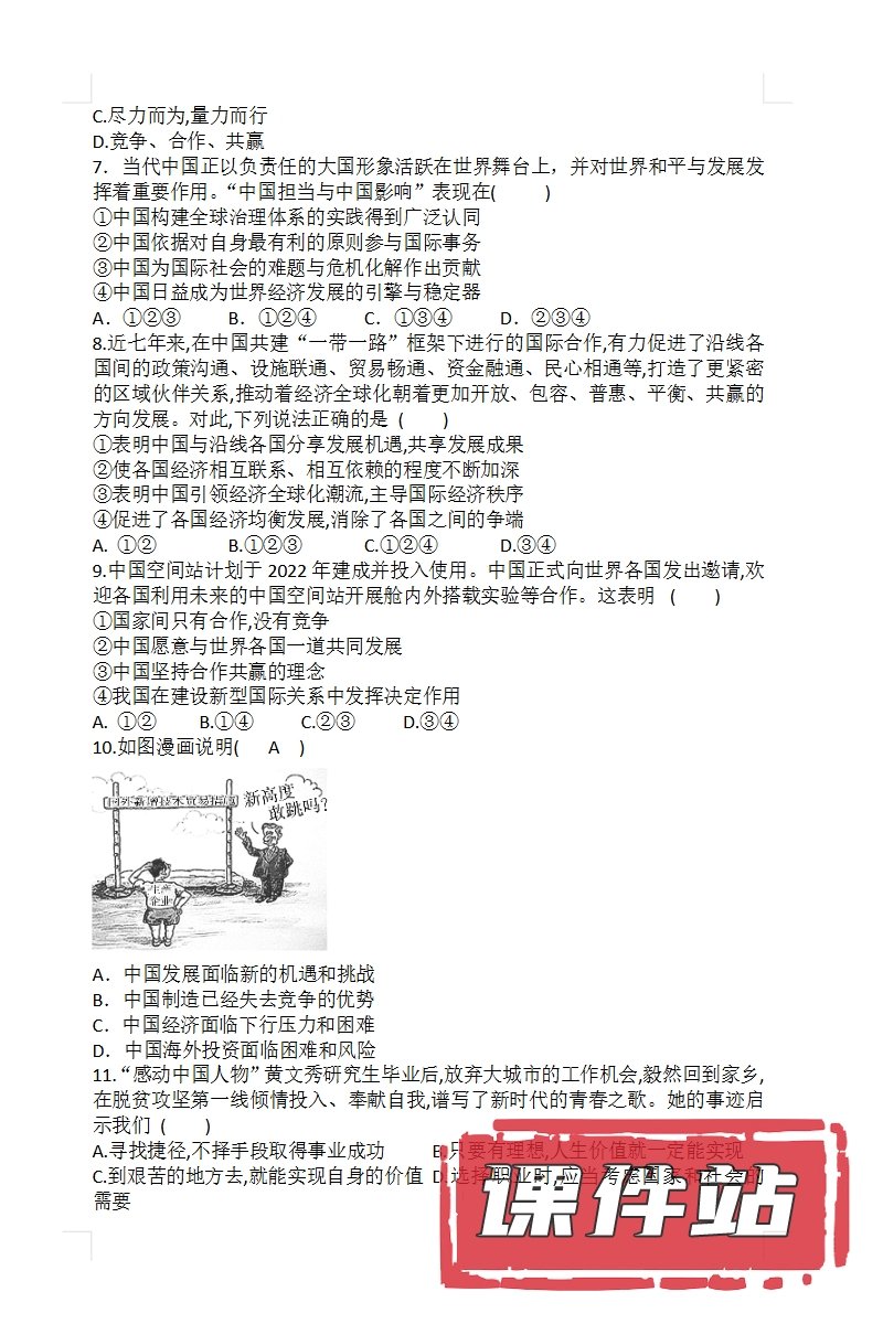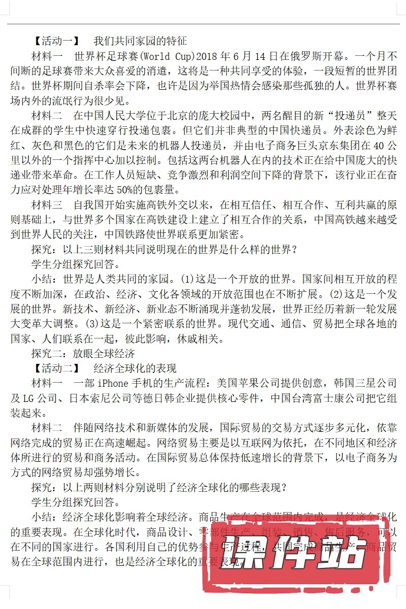 【打包下载】部编版九年级道德与法治下册教学资源
