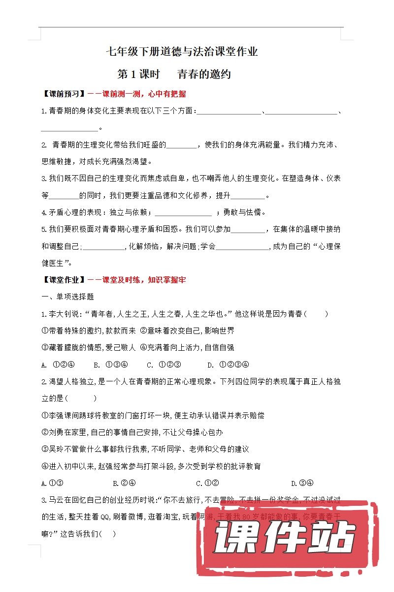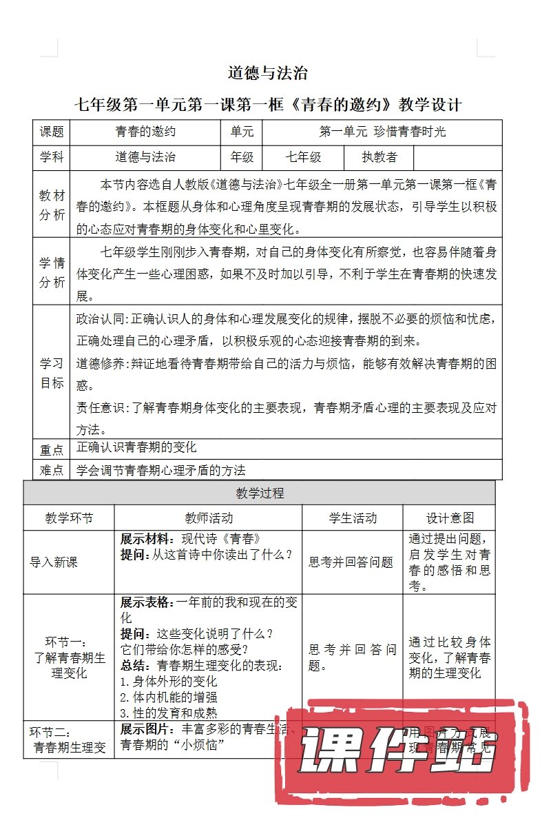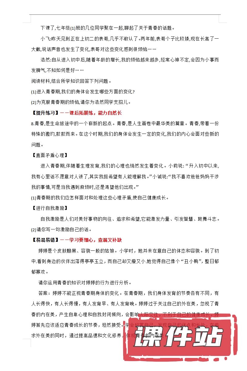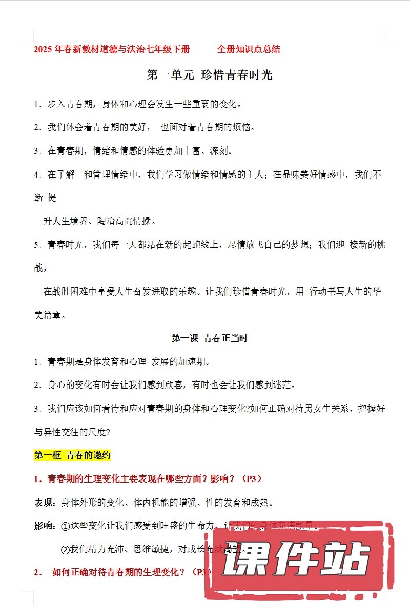 【打包下载】部编版七年级道德与法治下册教学资源