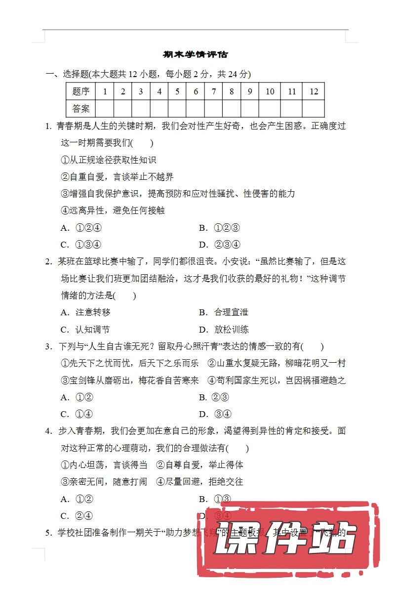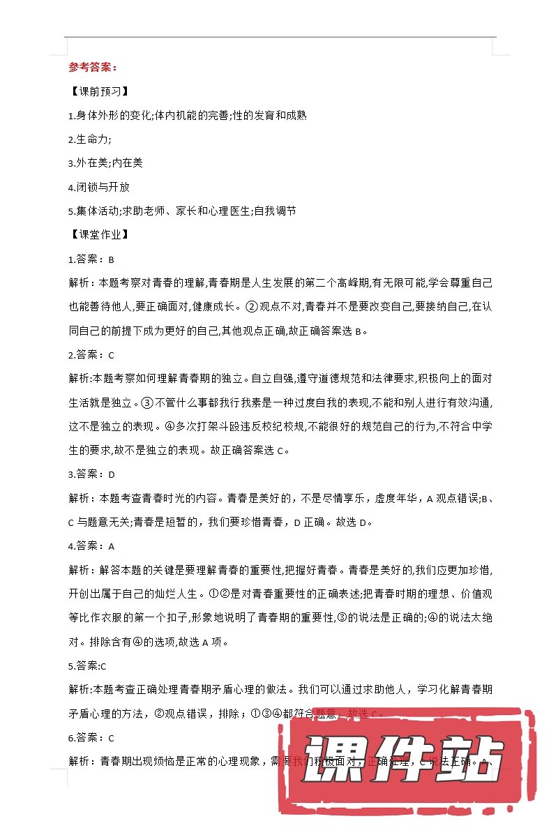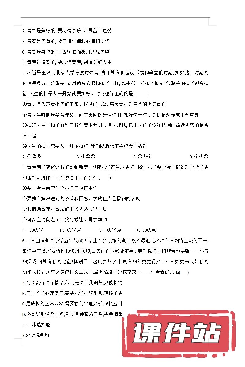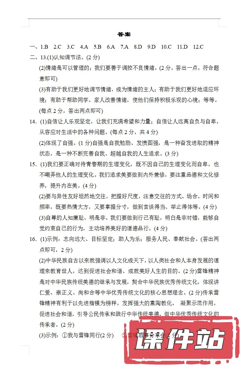 【打包下载】部编版七年级道德与法治下册教学资源