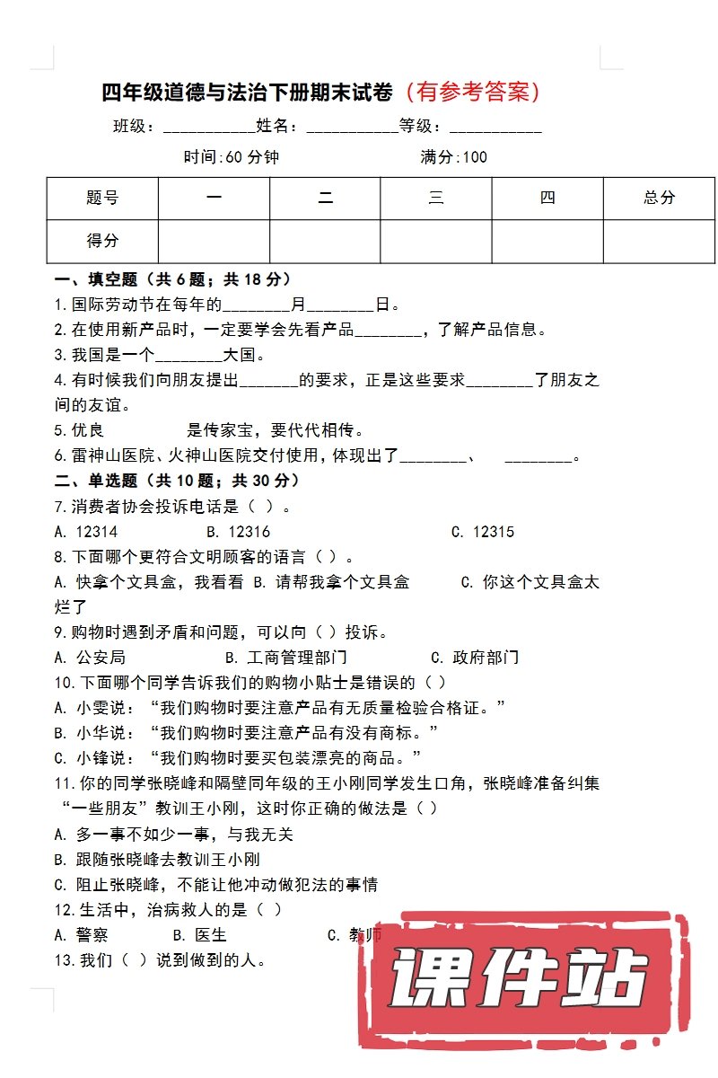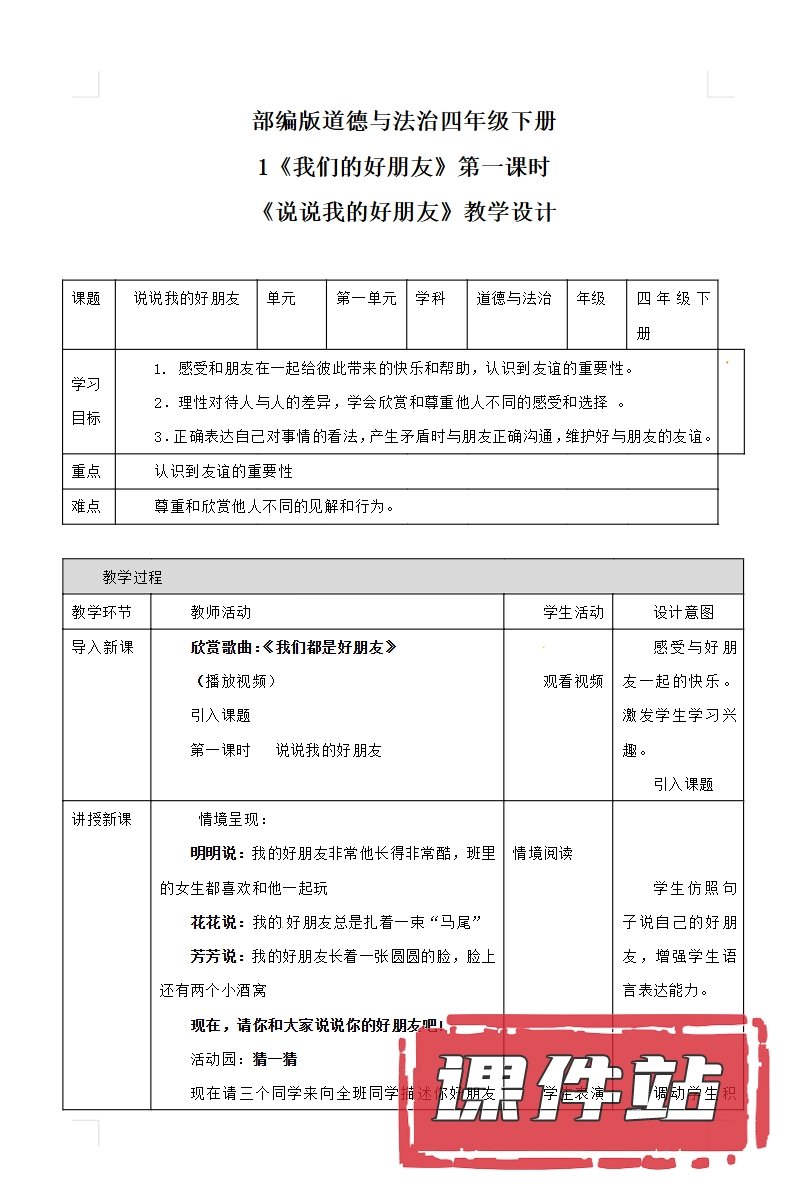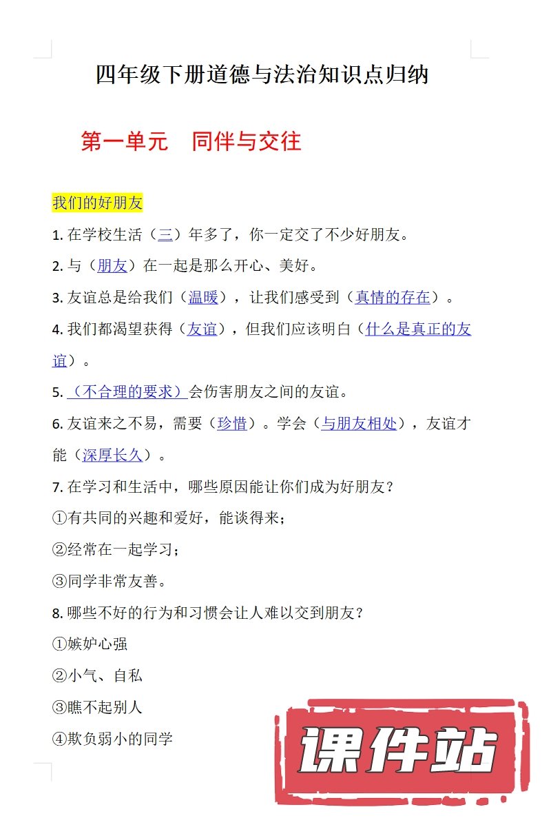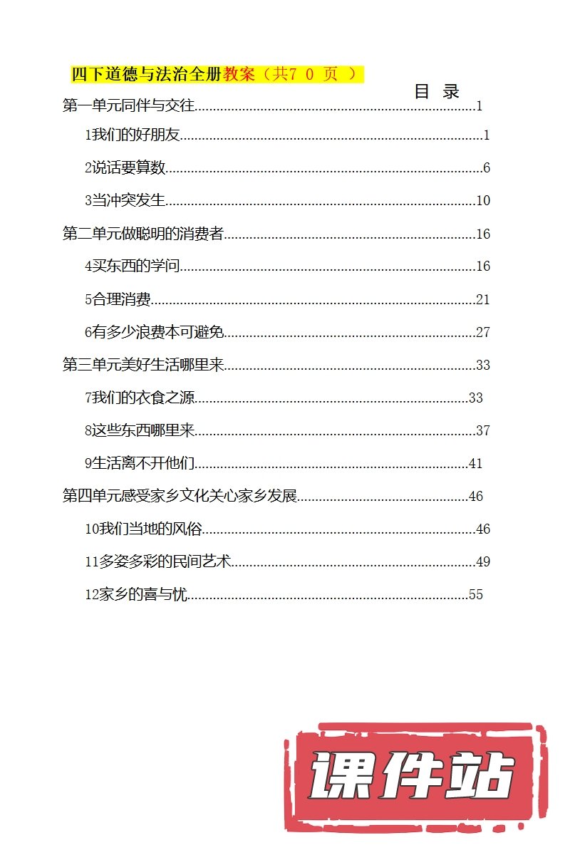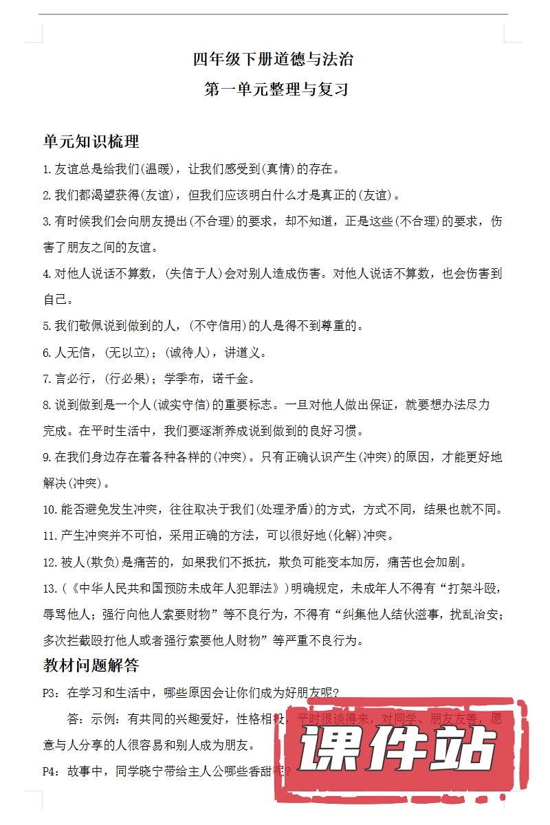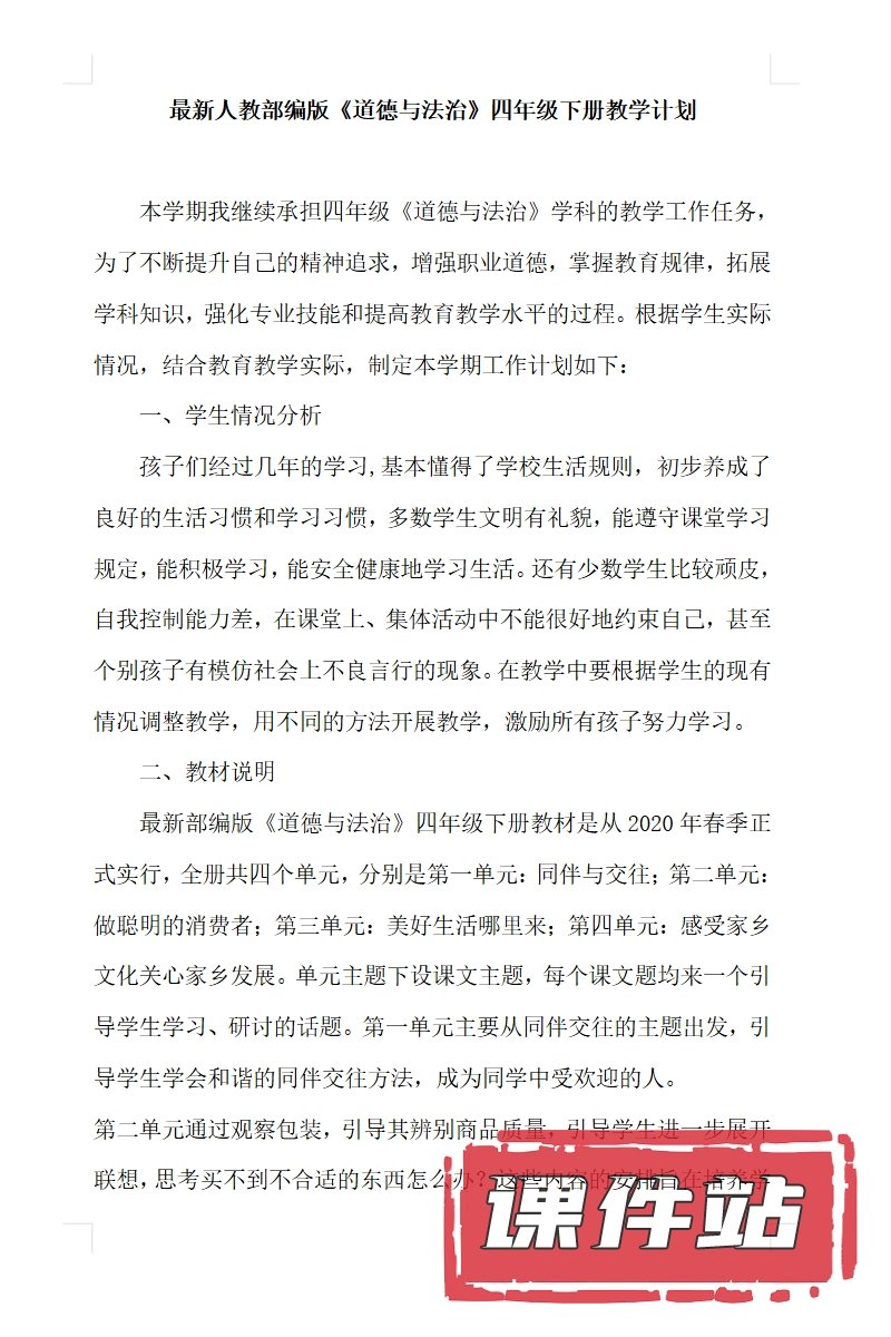 【打包下载】部编版四年级道德与法治下册教学资源