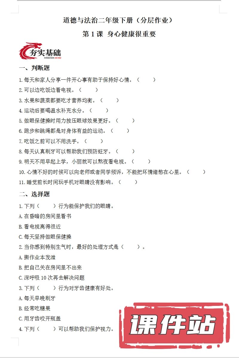 【打包下载】部编版二年级道德与法治下册教学资源