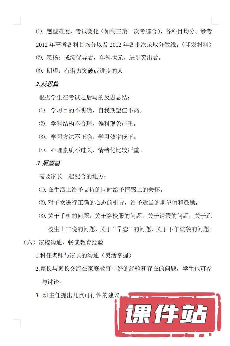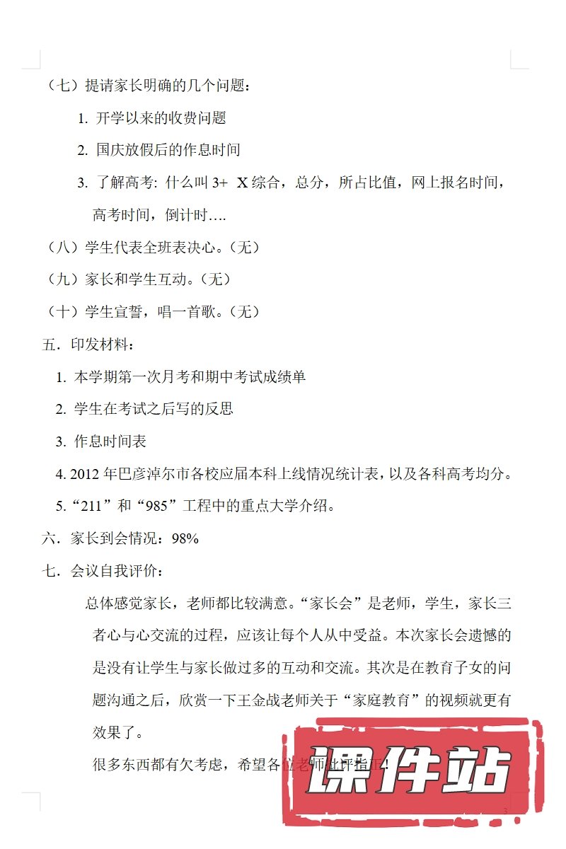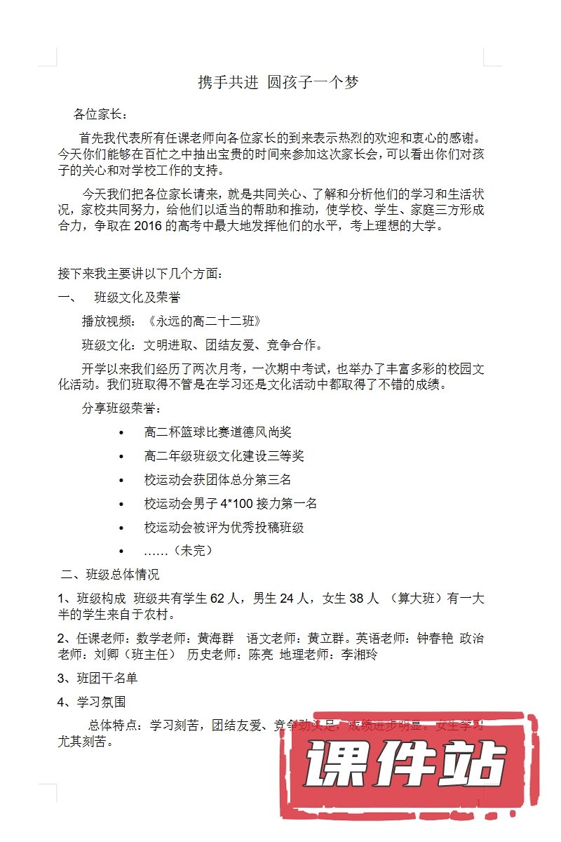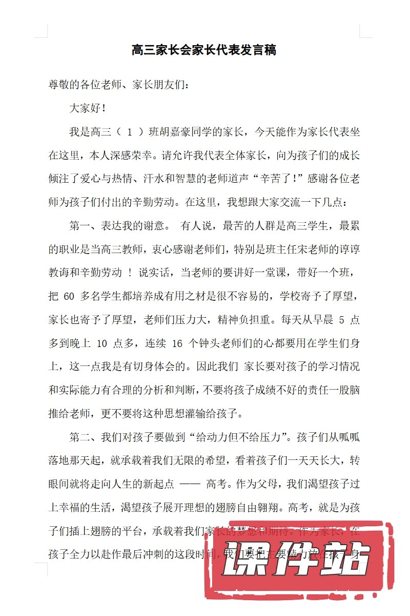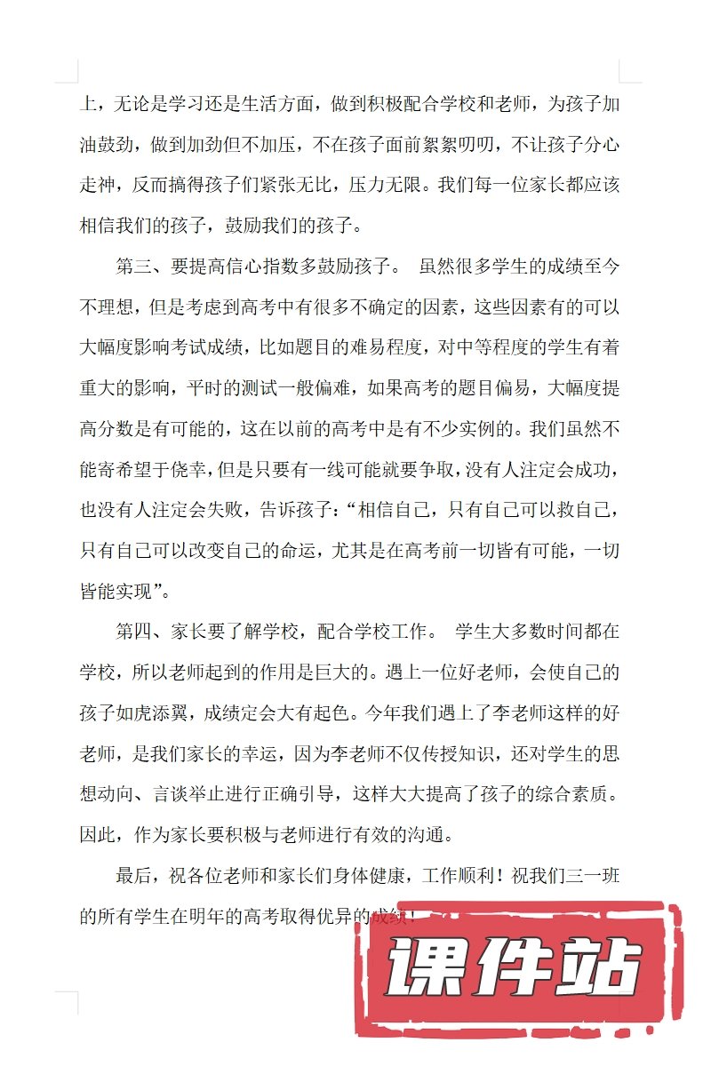 【12】高三家长会PPT、教案、发言稿、家长代表发言稿、总结反思(119份)