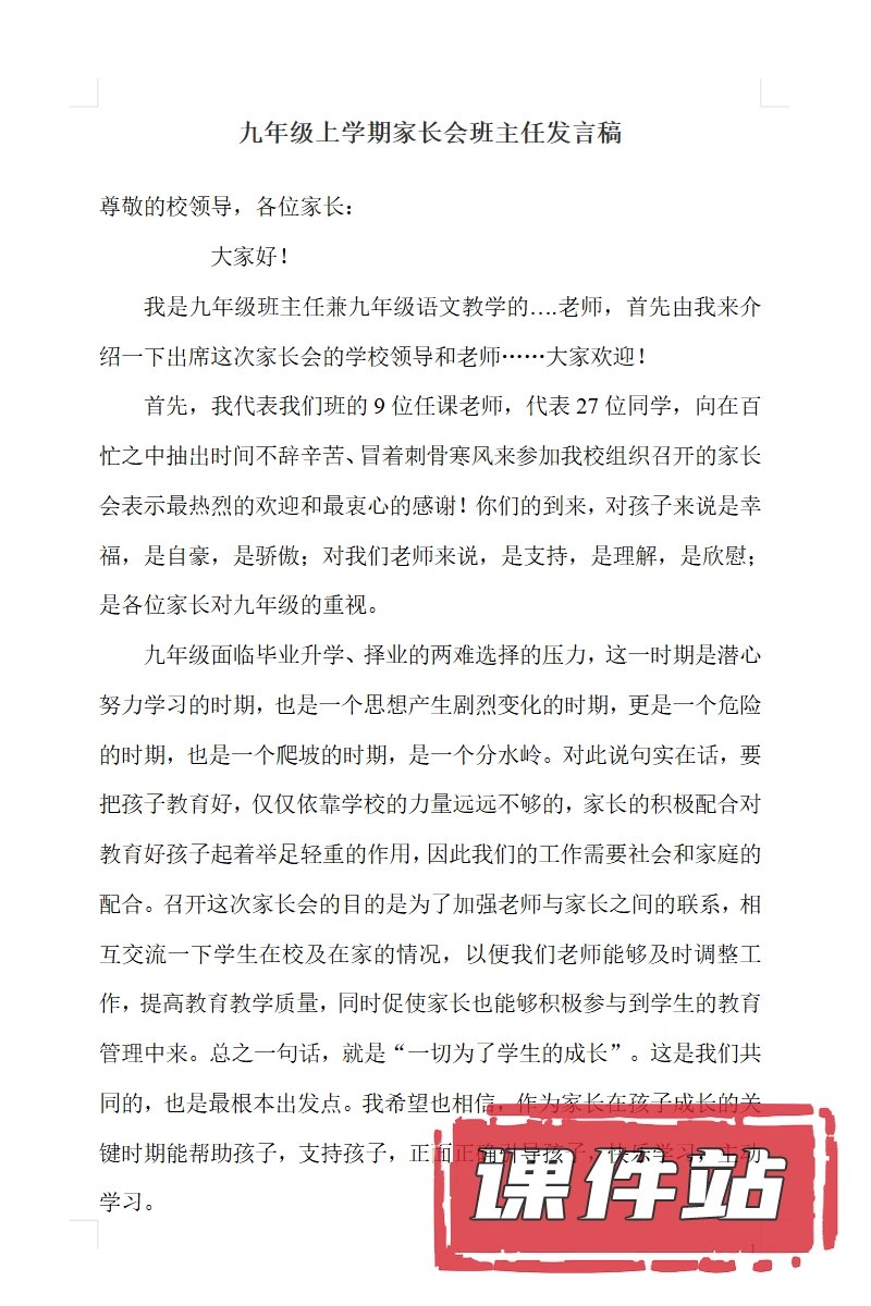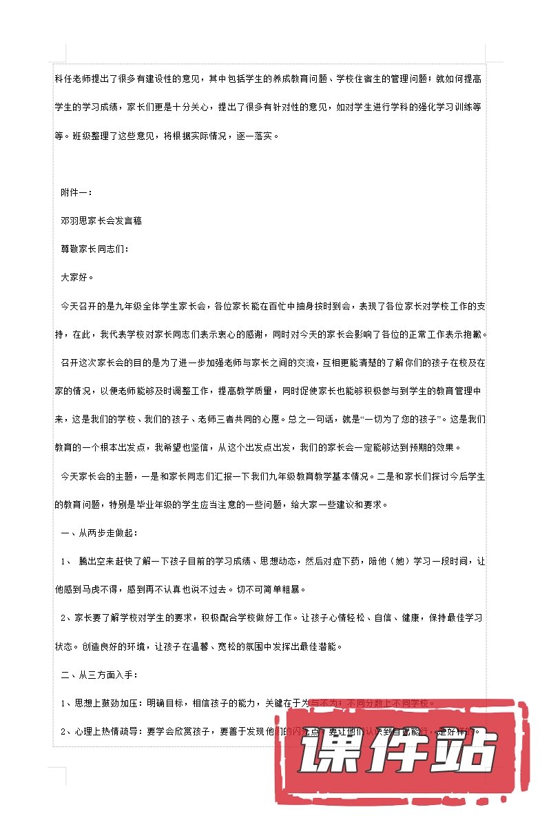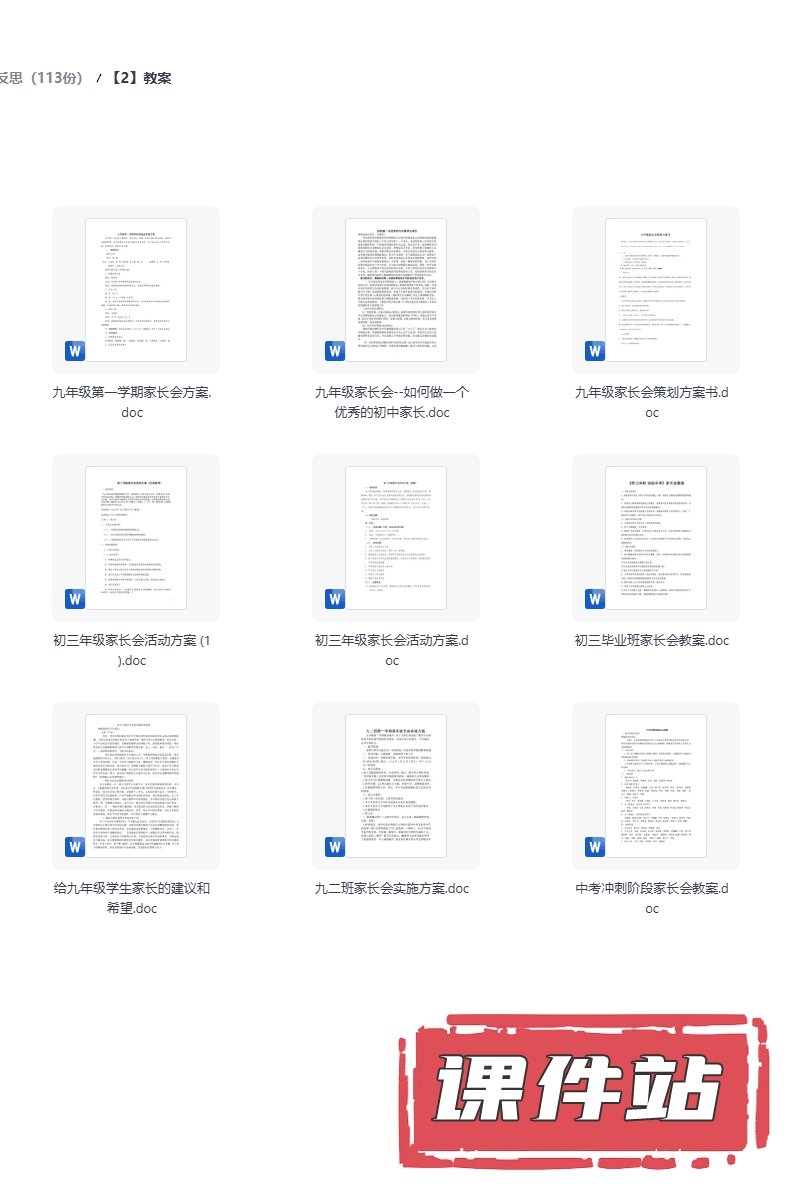 【9】九年级家长会PPT、教案、发言稿、家长代表发言稿、总结反思(113份)