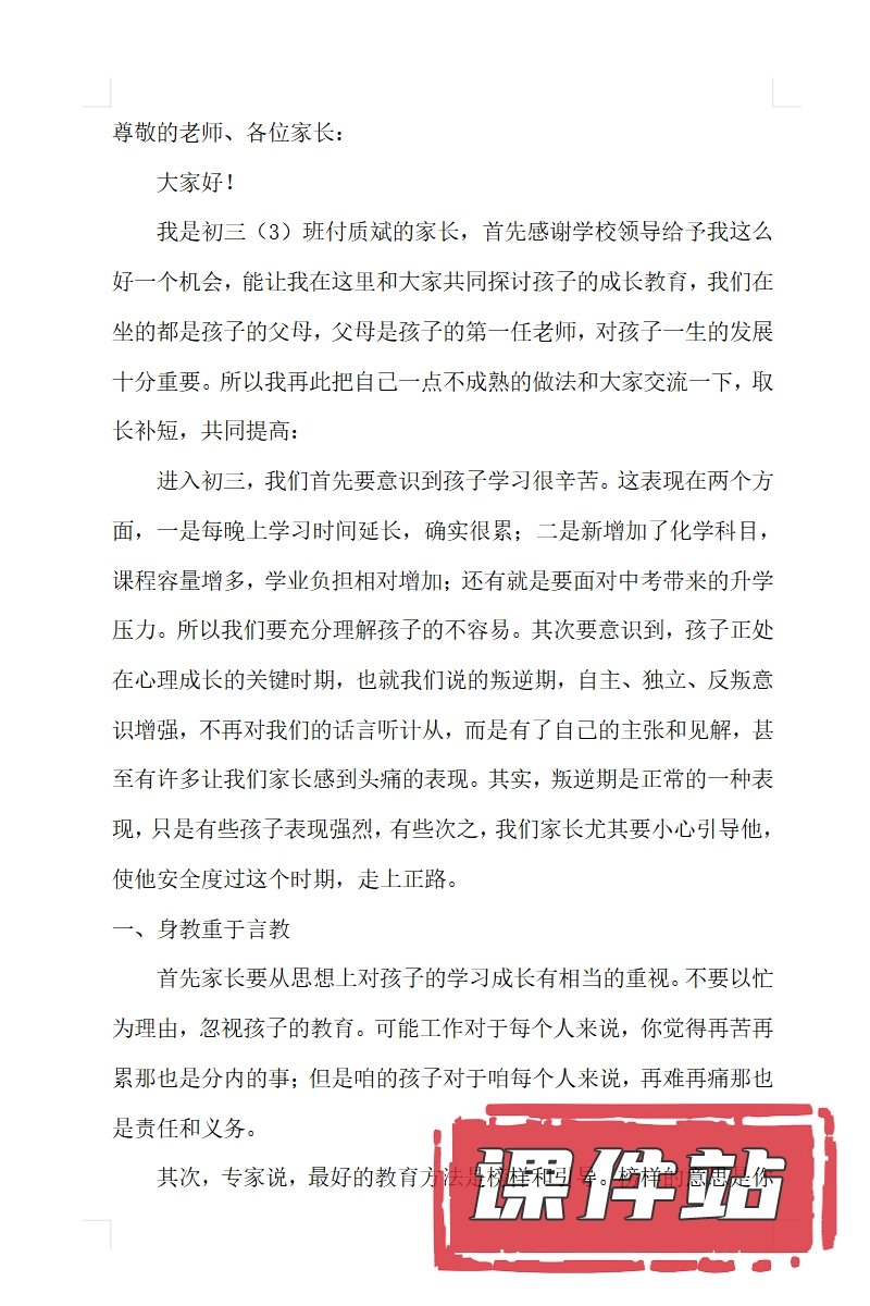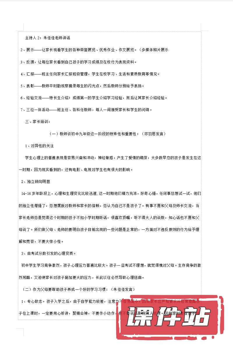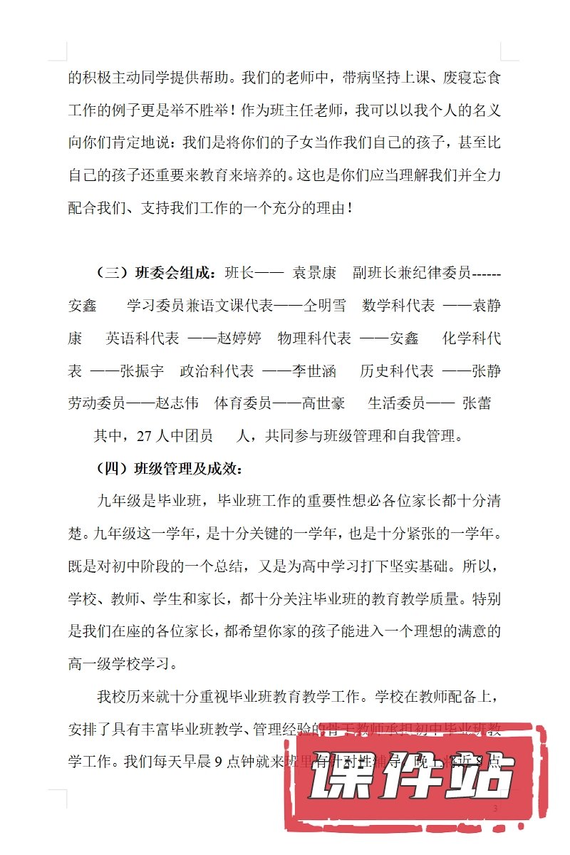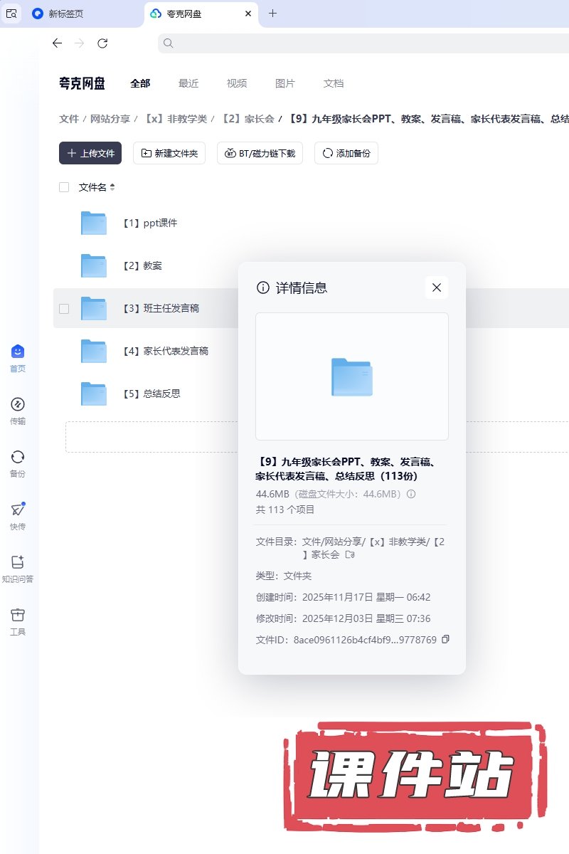 【9】九年级家长会PPT、教案、发言稿、家长代表发言稿、总结反思(113份)