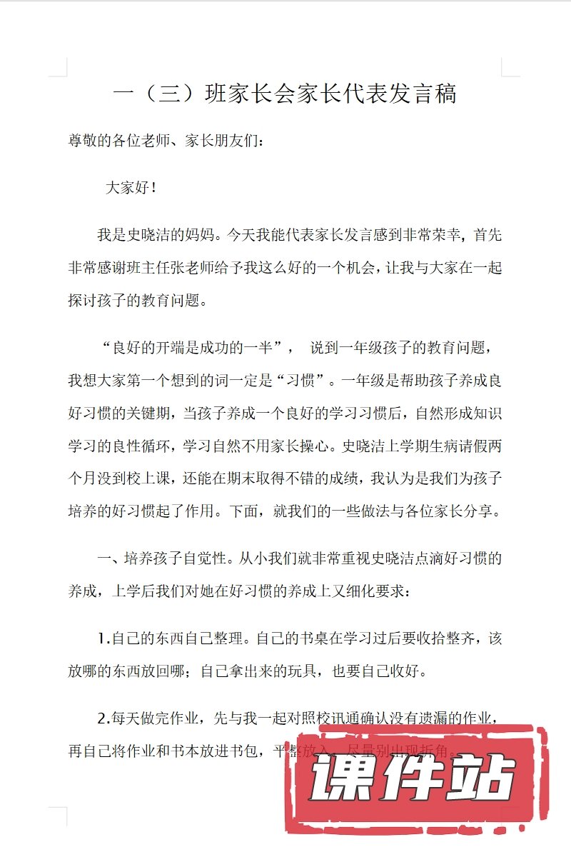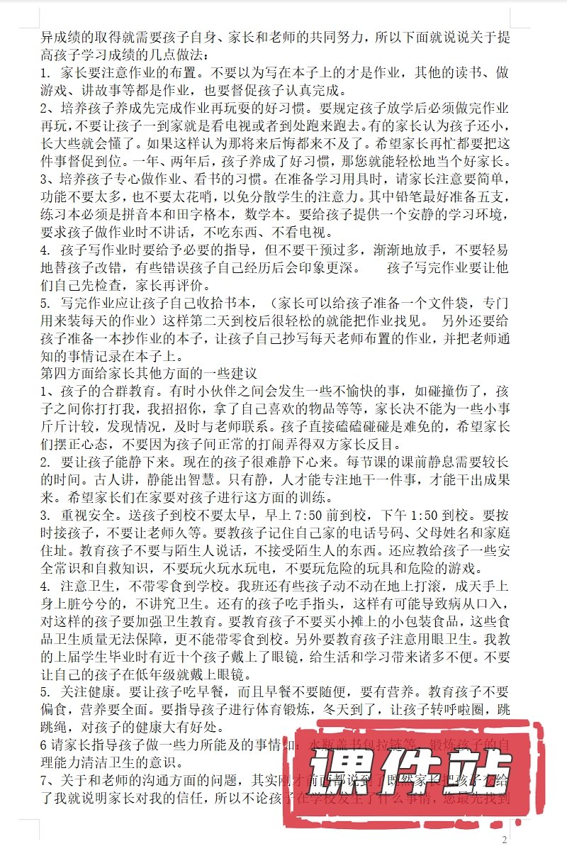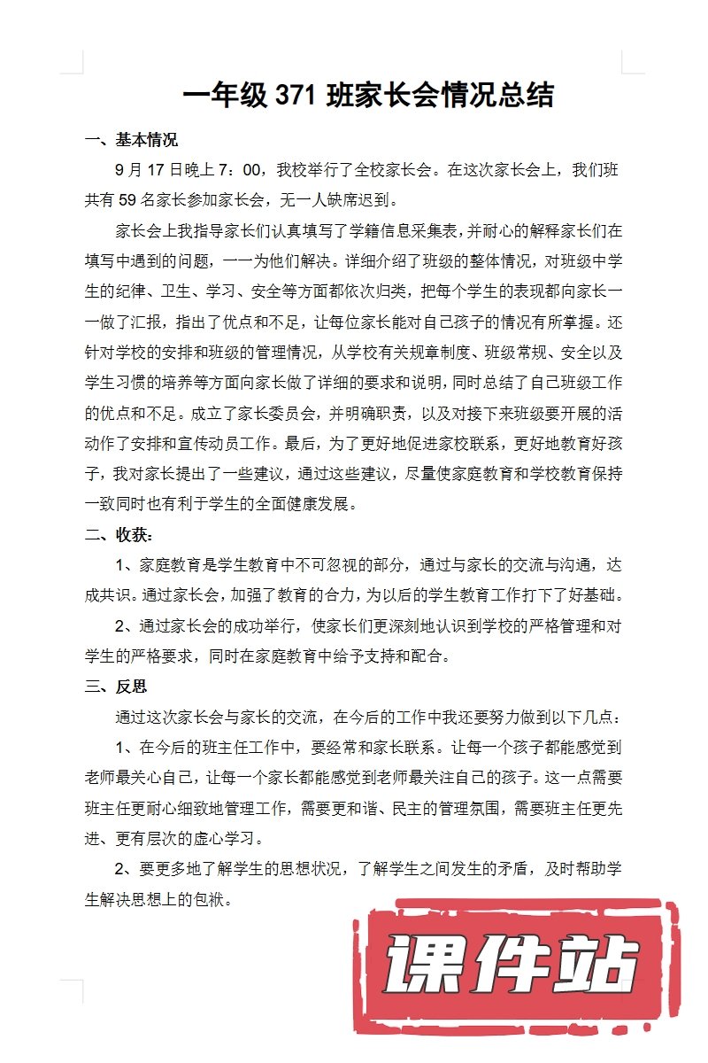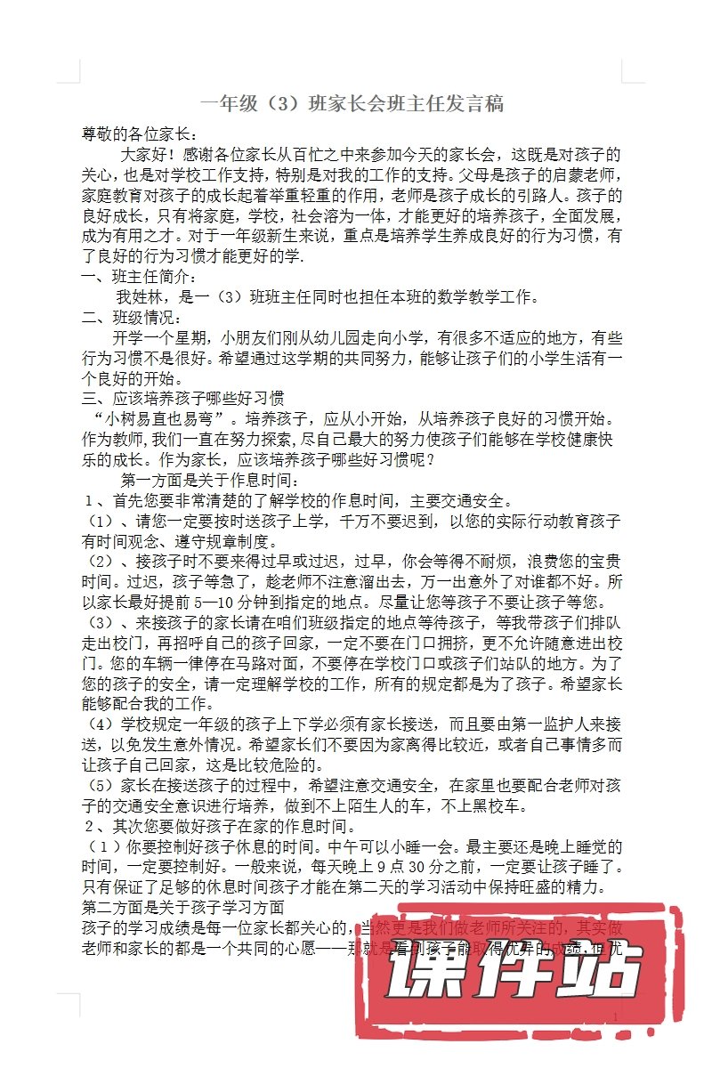【1】一年级家长会PPT、教案、发言稿、家长代表发言稿、总结反思(118份)