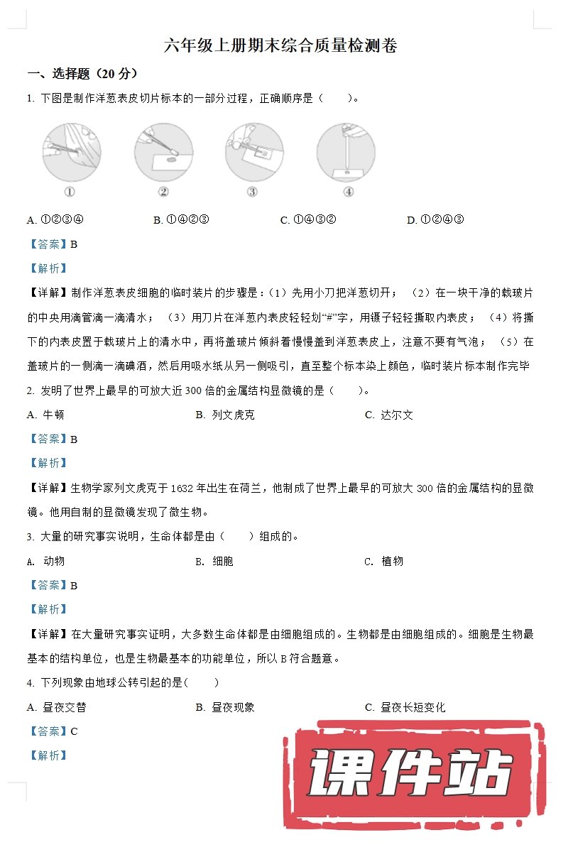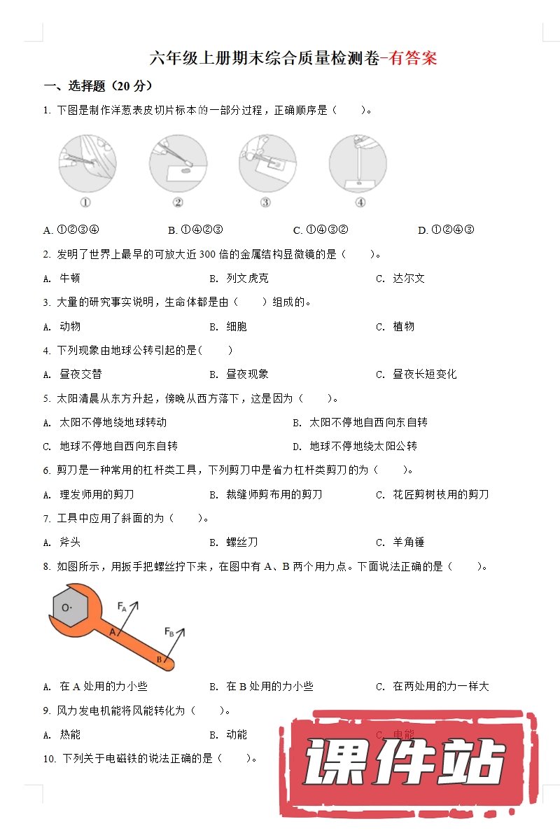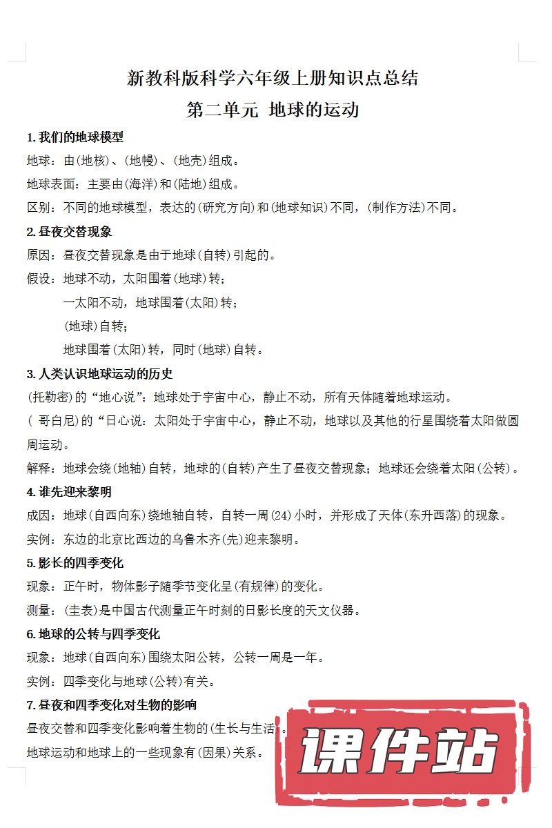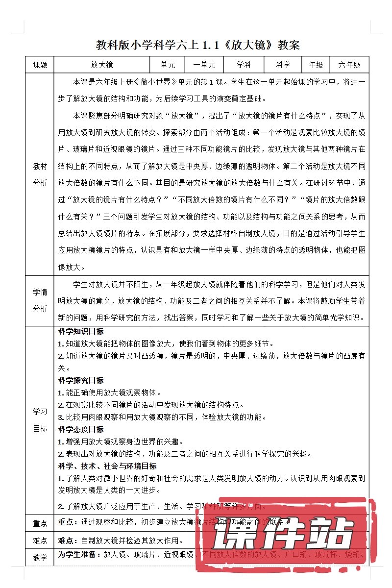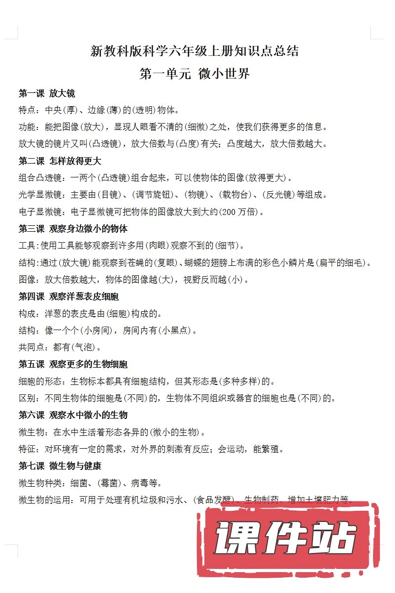 【打包下载】教科版六年级科学上册教学资源