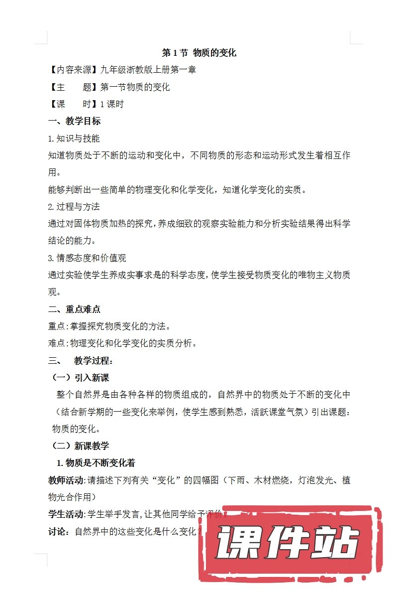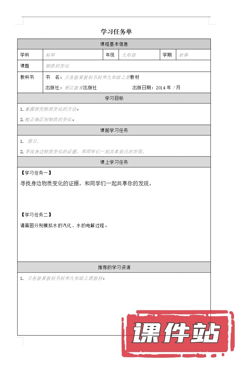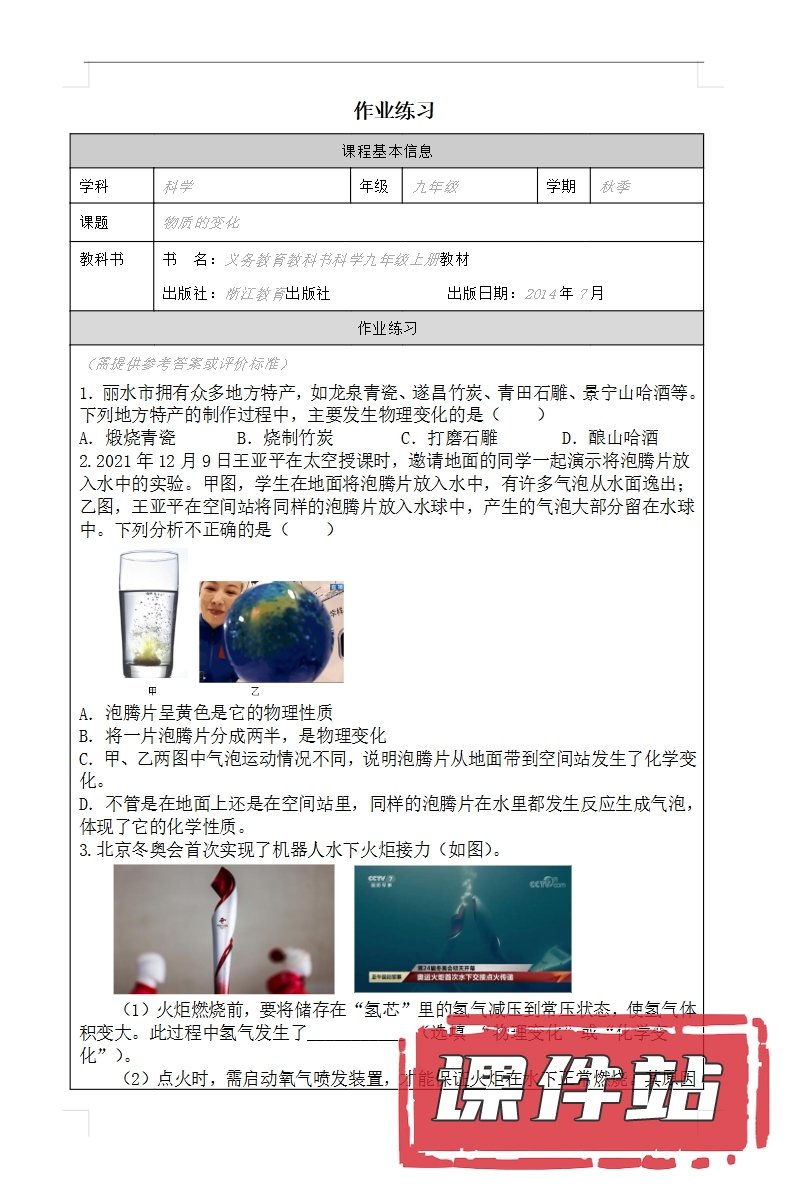 【打包下载】浙教版九年级科学上册教学资源