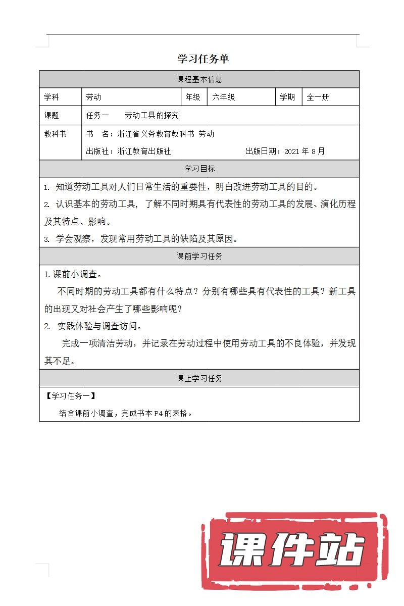 【打包下载】浙教版劳动6年级全册教学资源