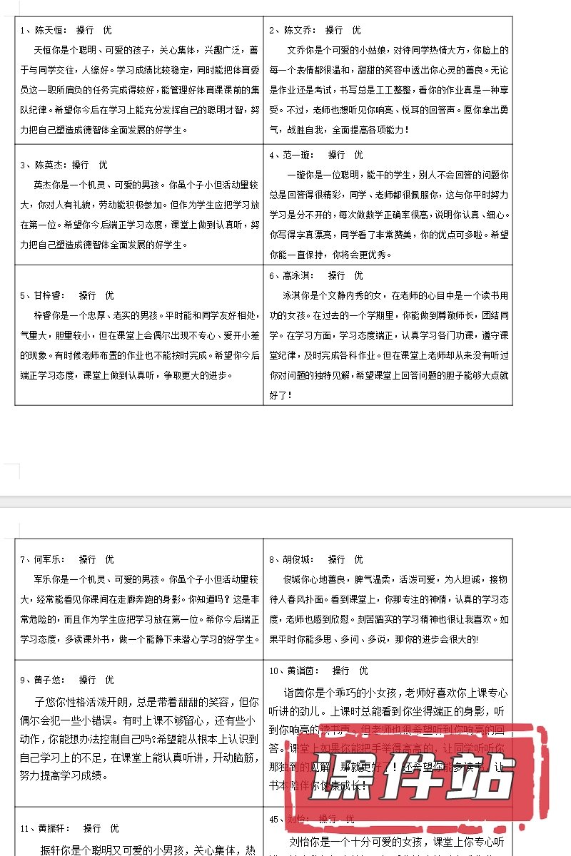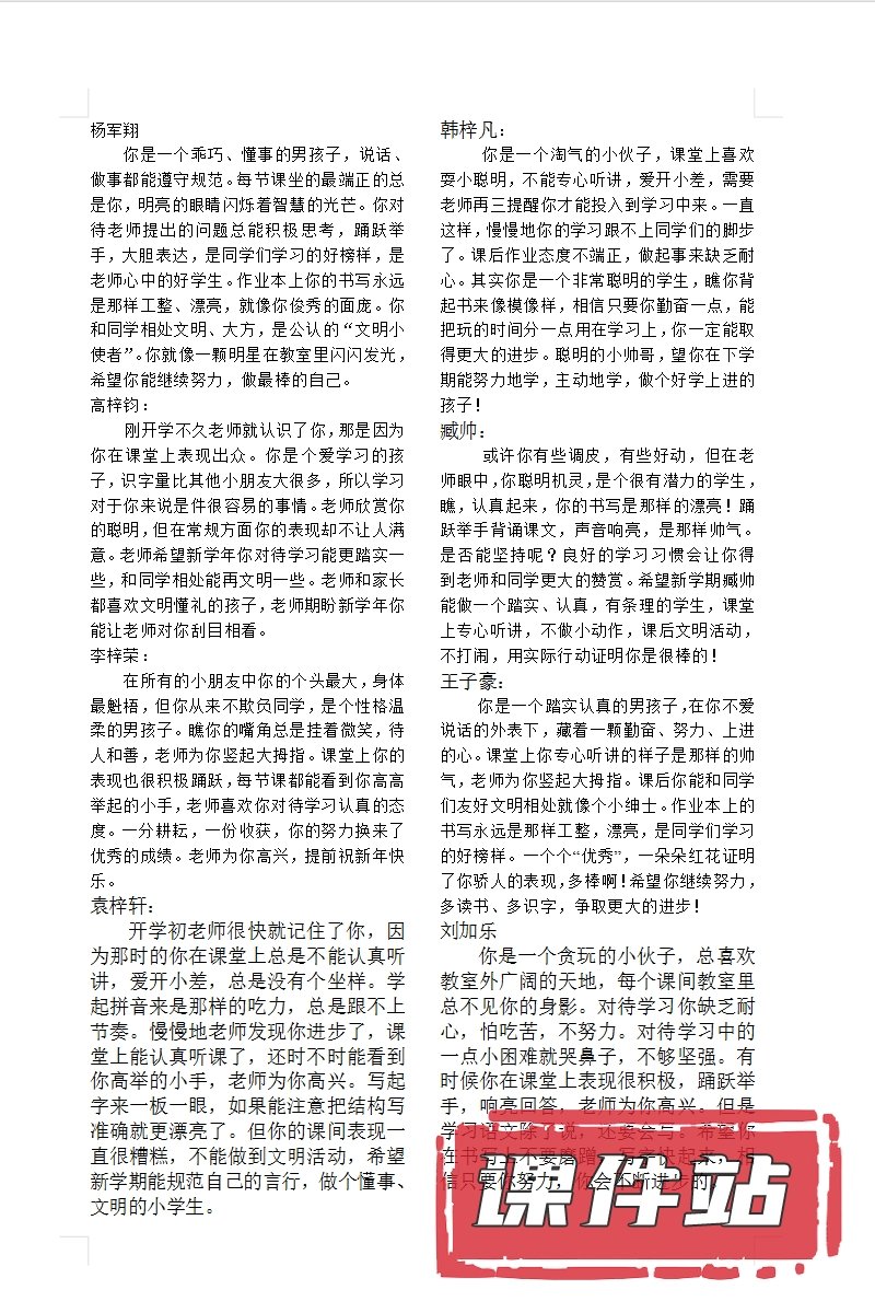 【打包下载】期末评语教学资源