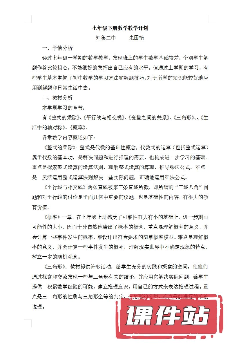 【打包下载】:北师大版数学七年级下册教学资源