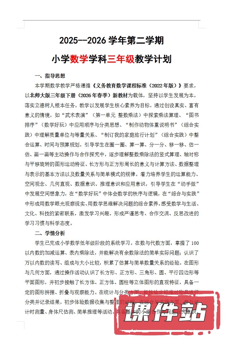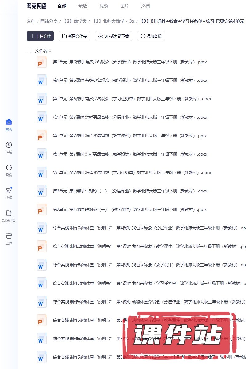 【打包下载】:北师大版数学三年级下册教学资源