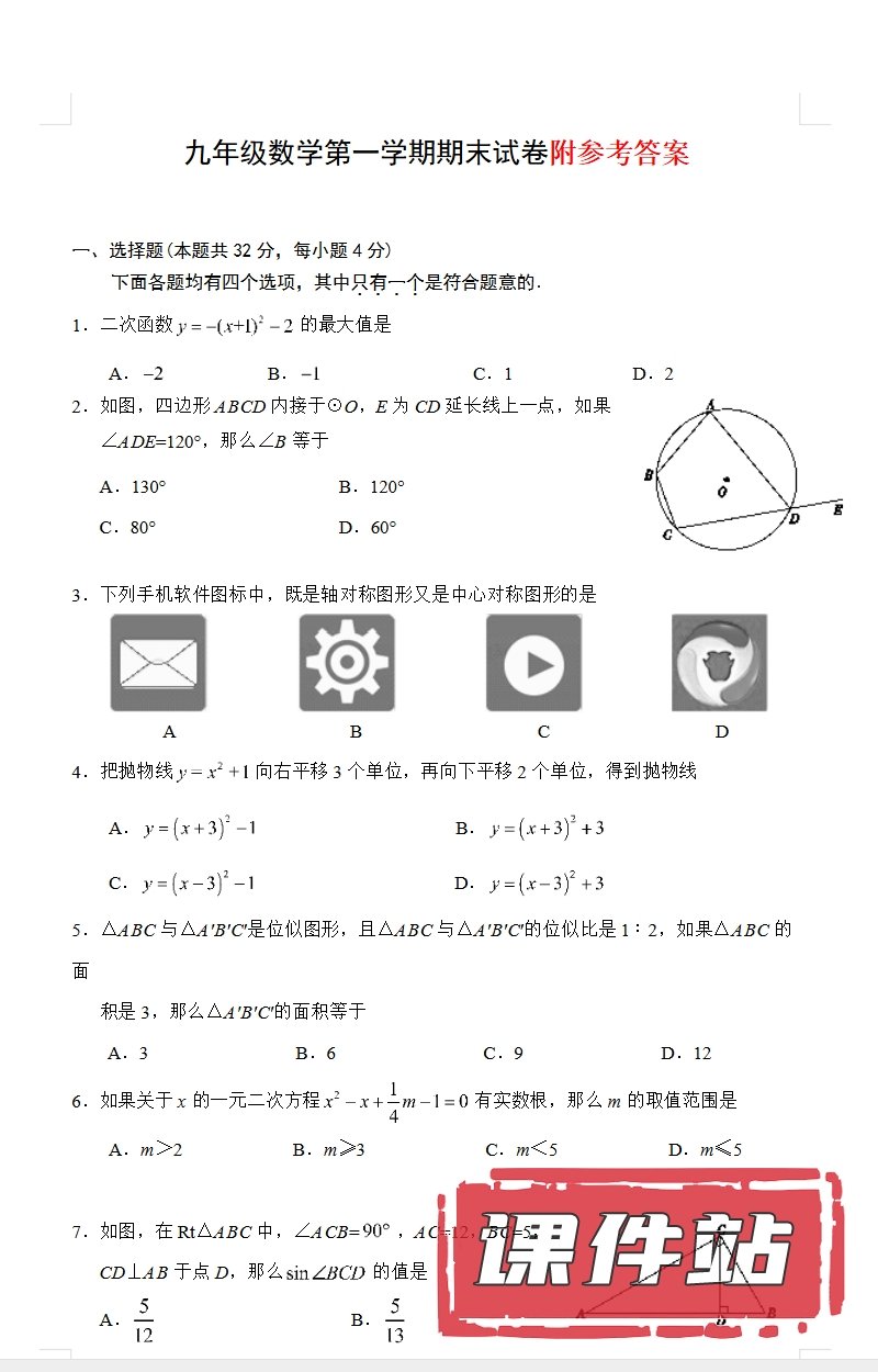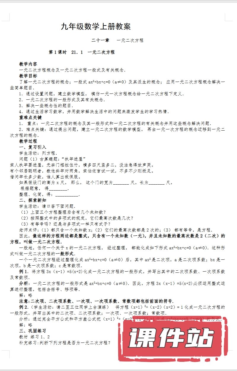 支持← →键盘翻页 主页 > 数学 > 人教版 【编号1340】人教版初中数学九年级上册教学资源
