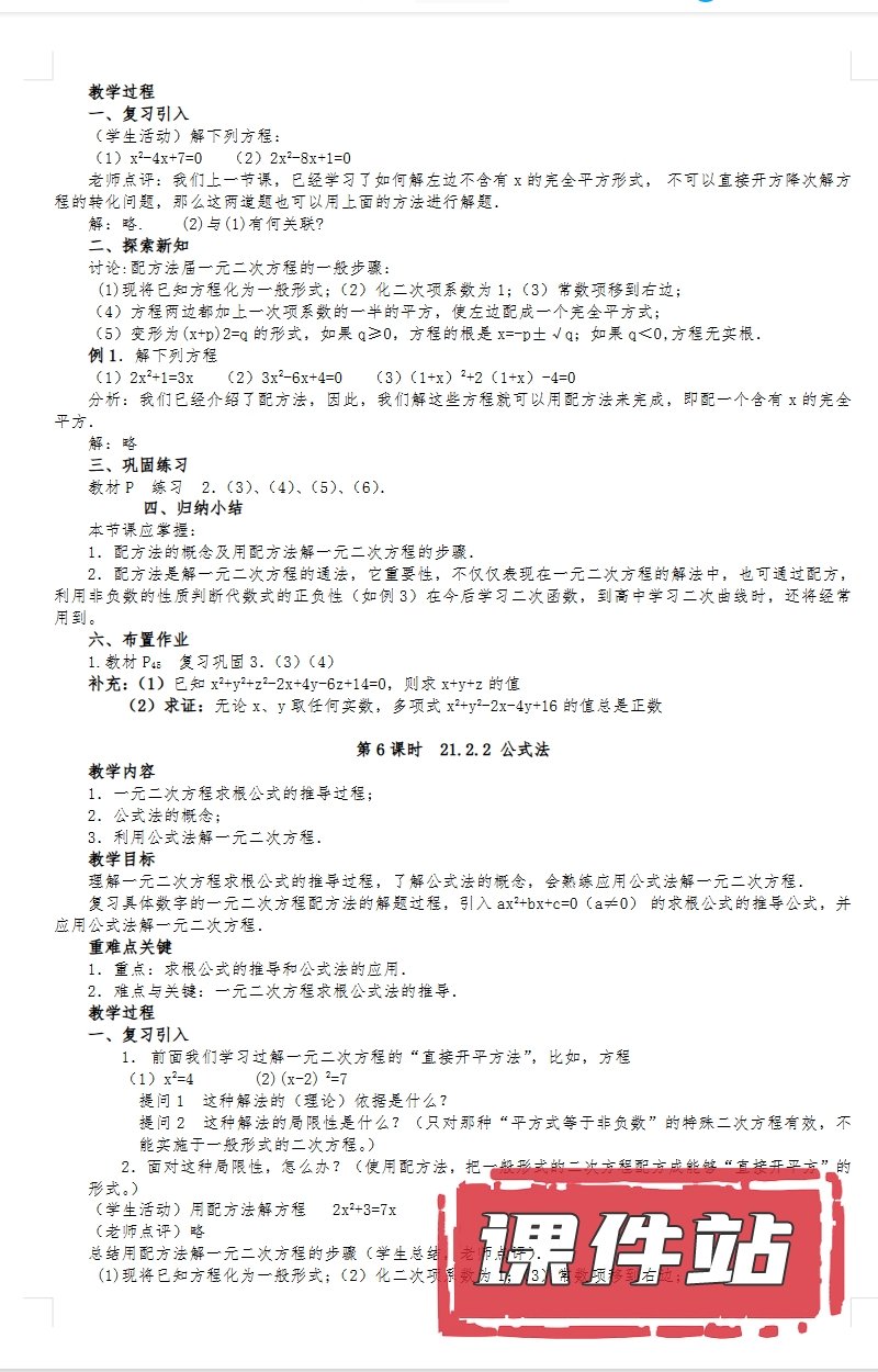【编号1340】人教版初中数学九年级上册教学资源