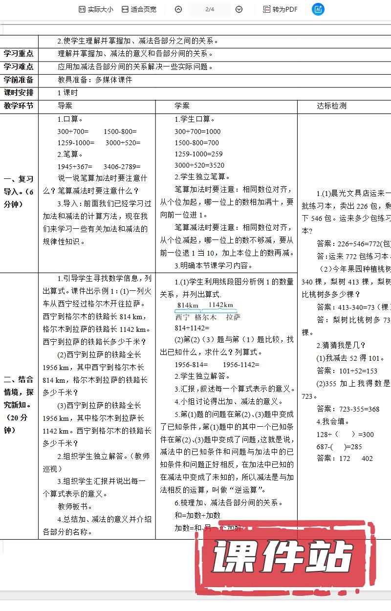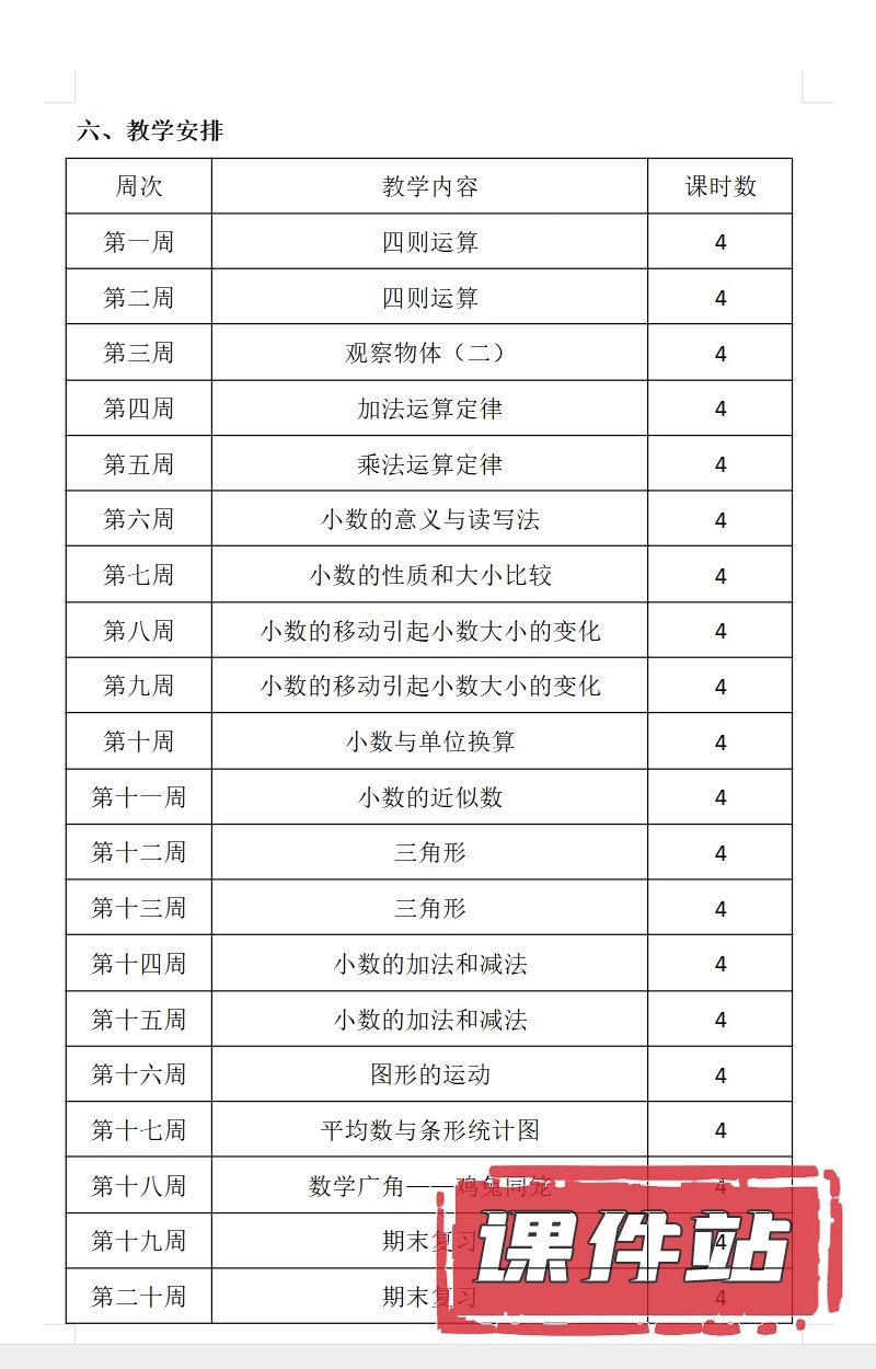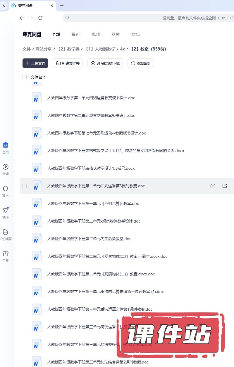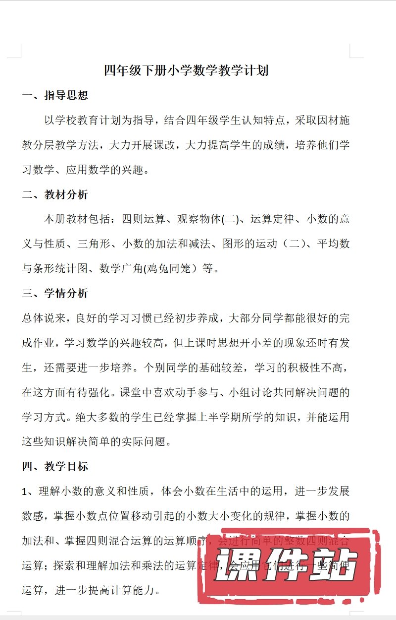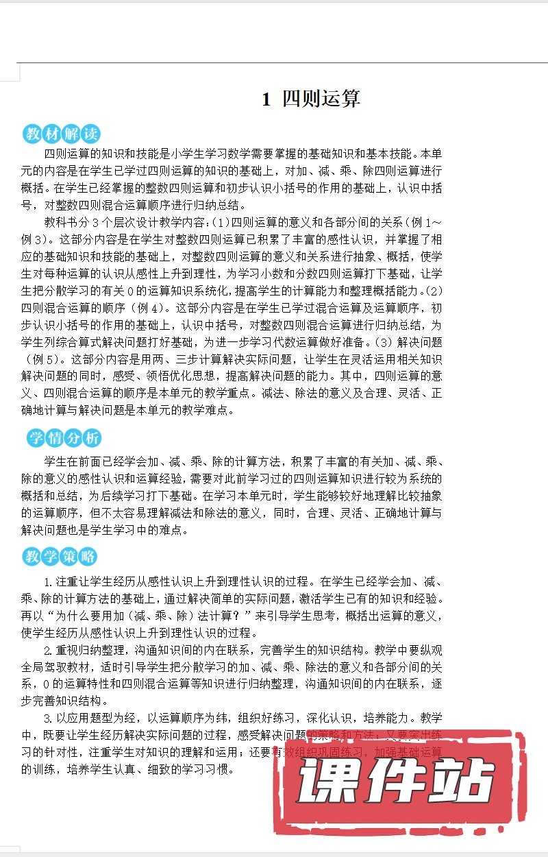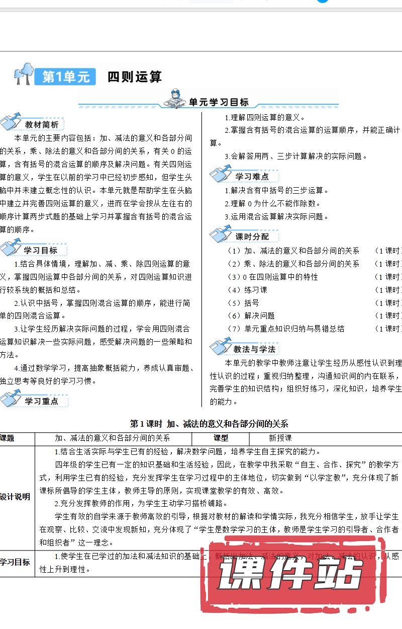 支持← →键盘翻页 主页 > 数学 > 人教版 【编号1331】人教版小学数学四年级下册教学资源