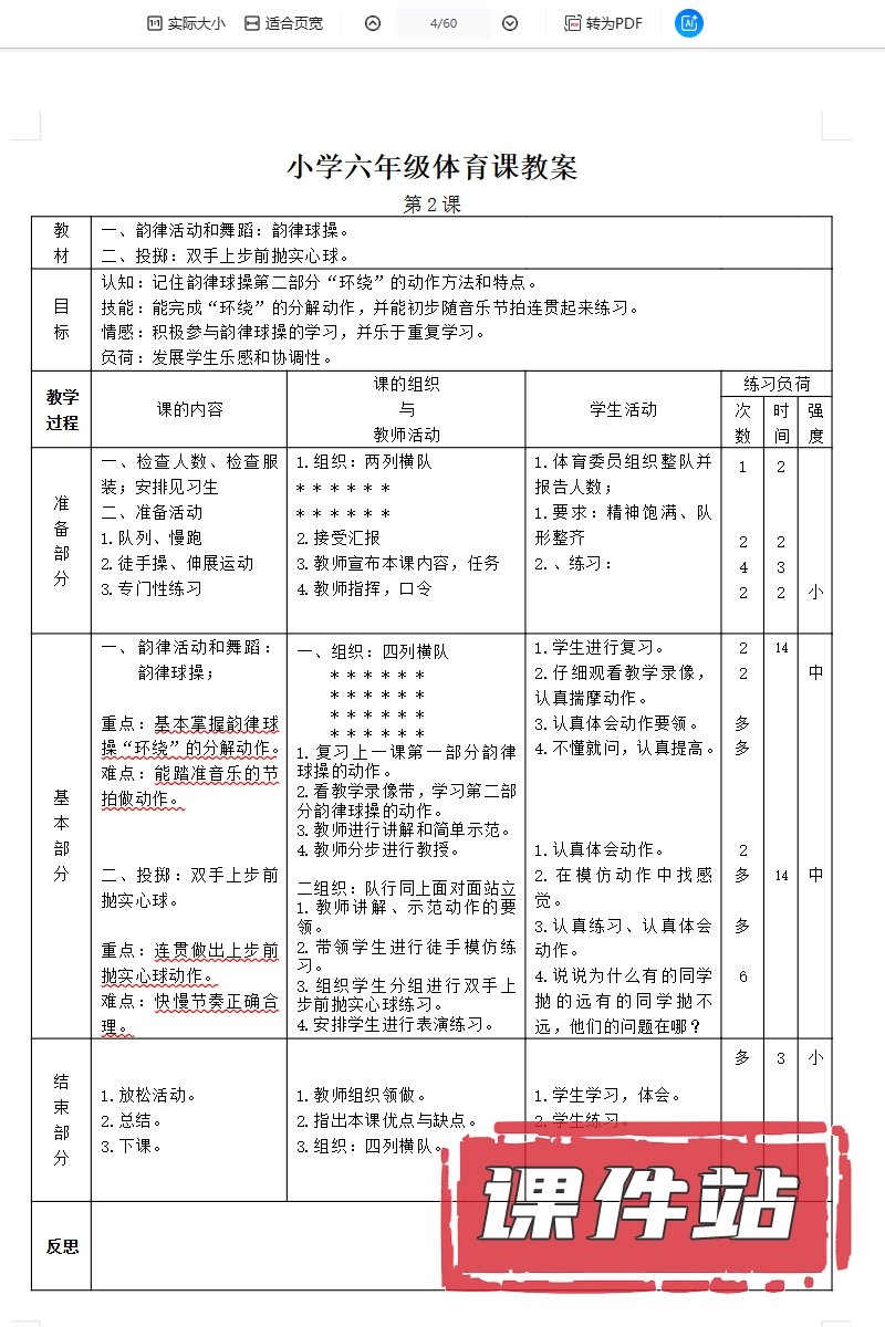 【打包下载】小学体育教案教学资源