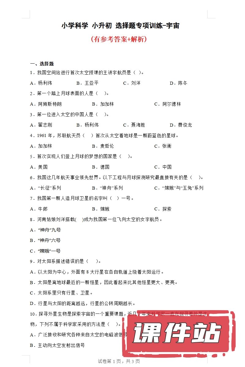 【打包下载】小升初科学教学资源