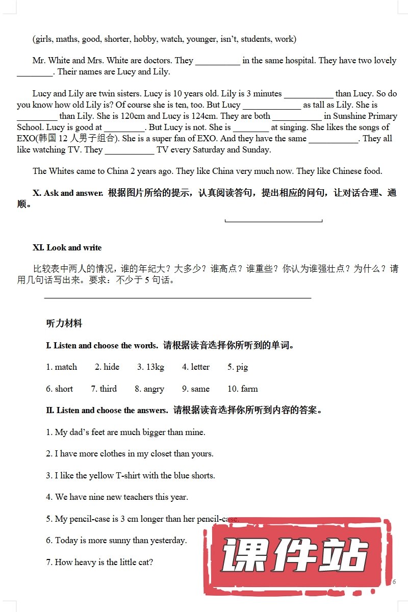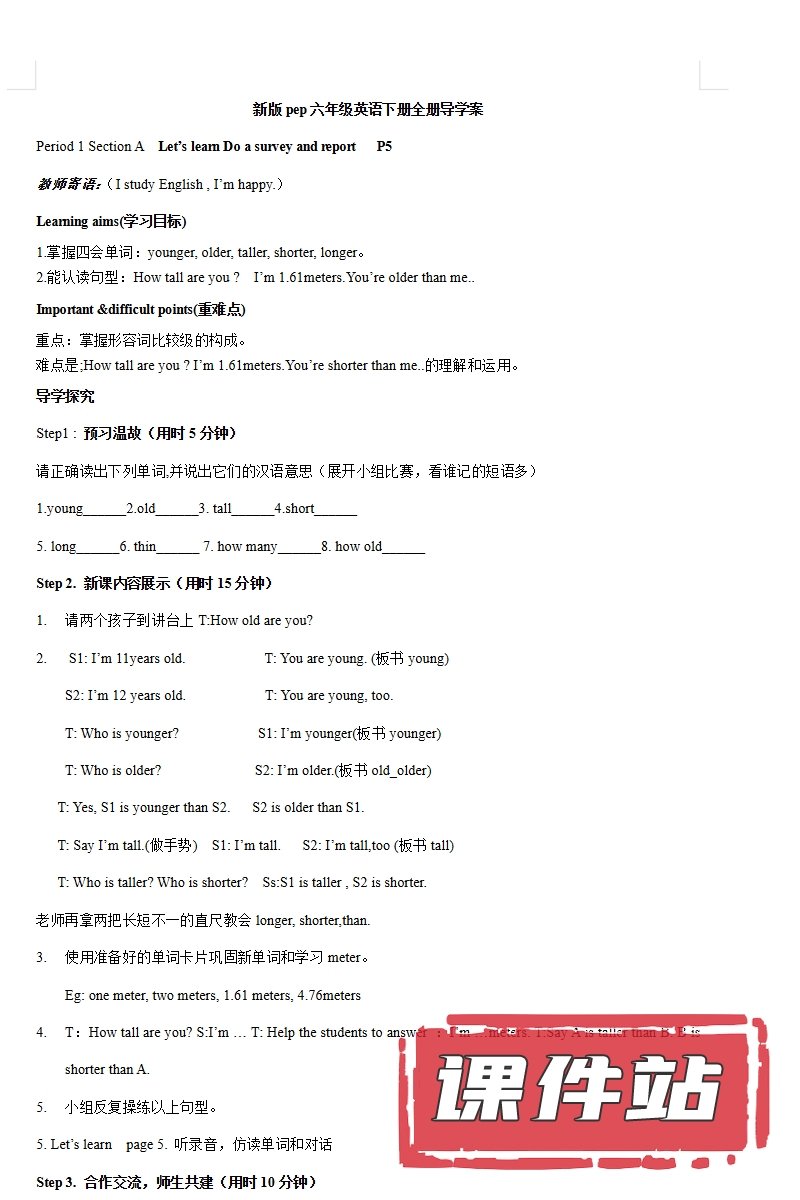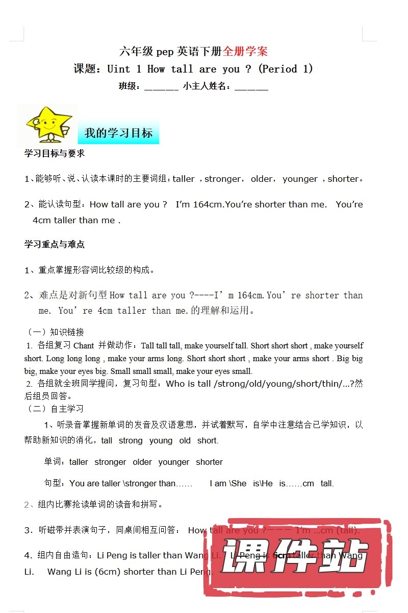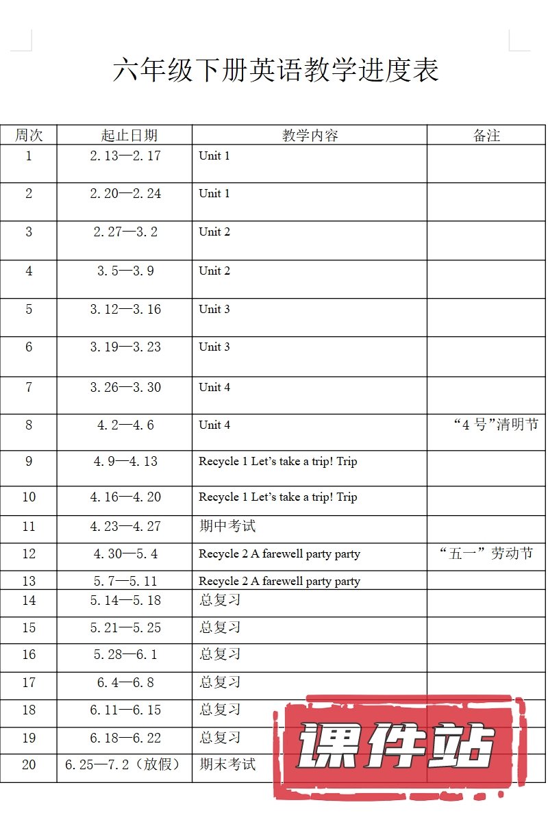 【打包下载】人教版小学英语六年级下册教学资源