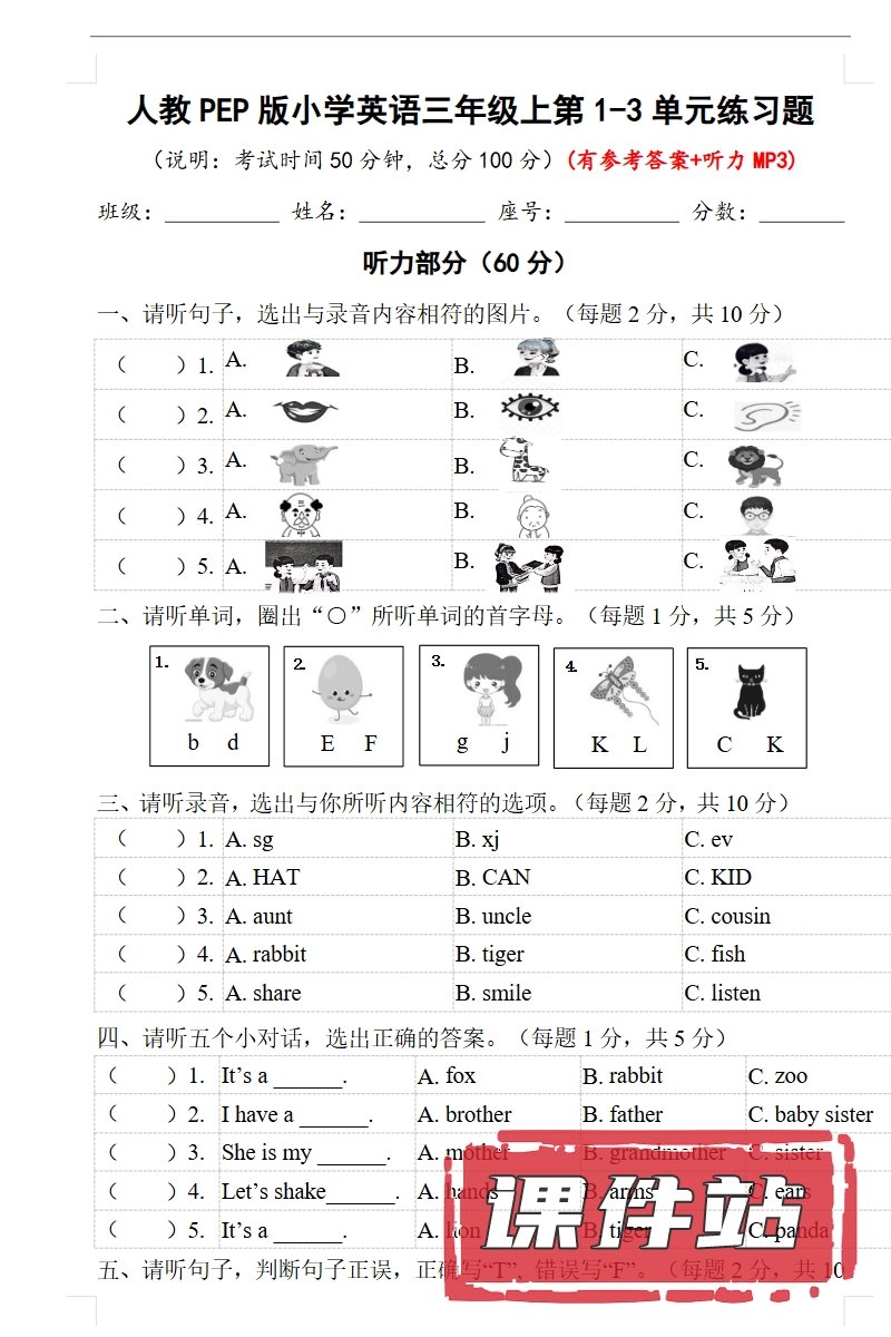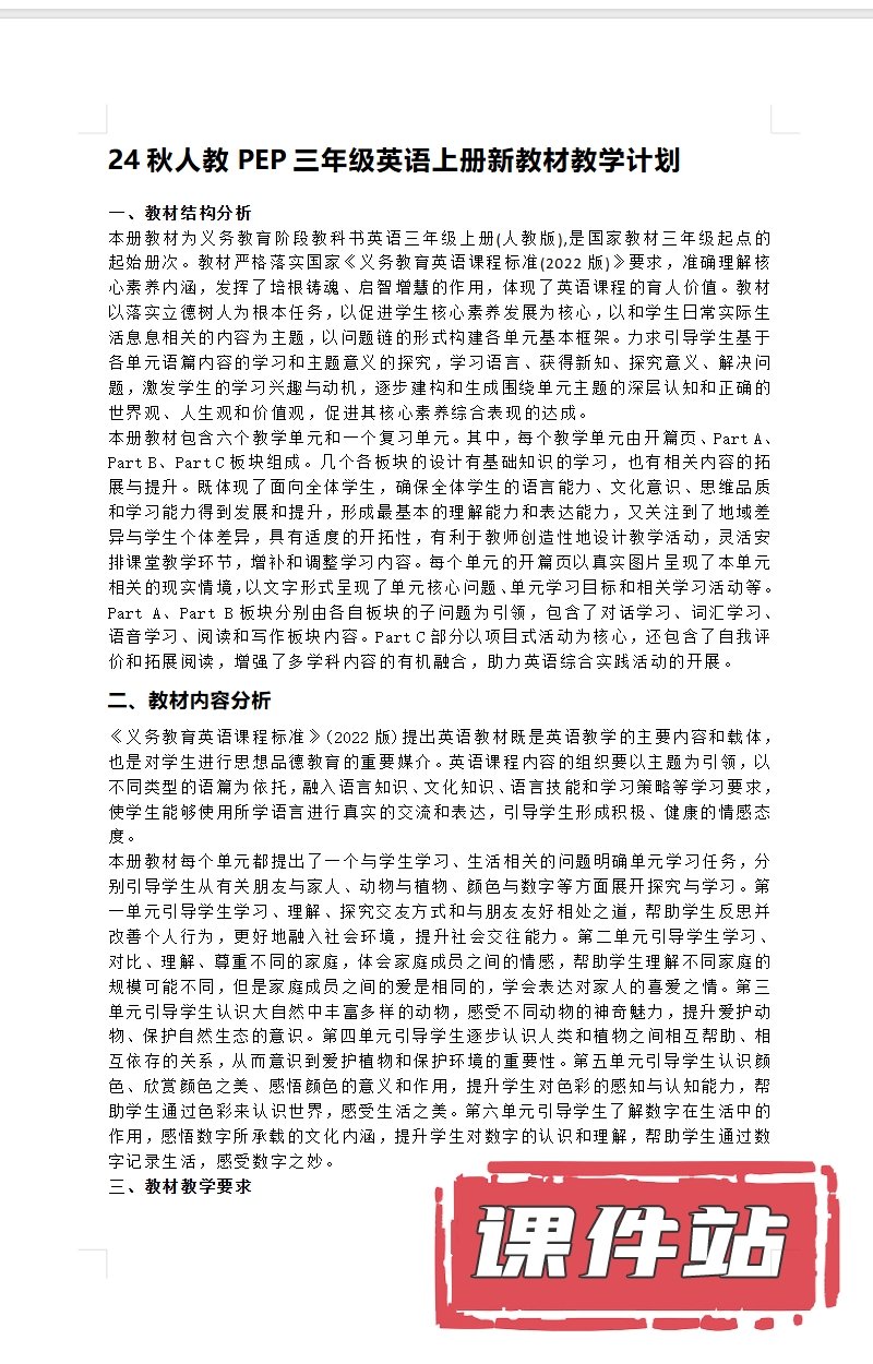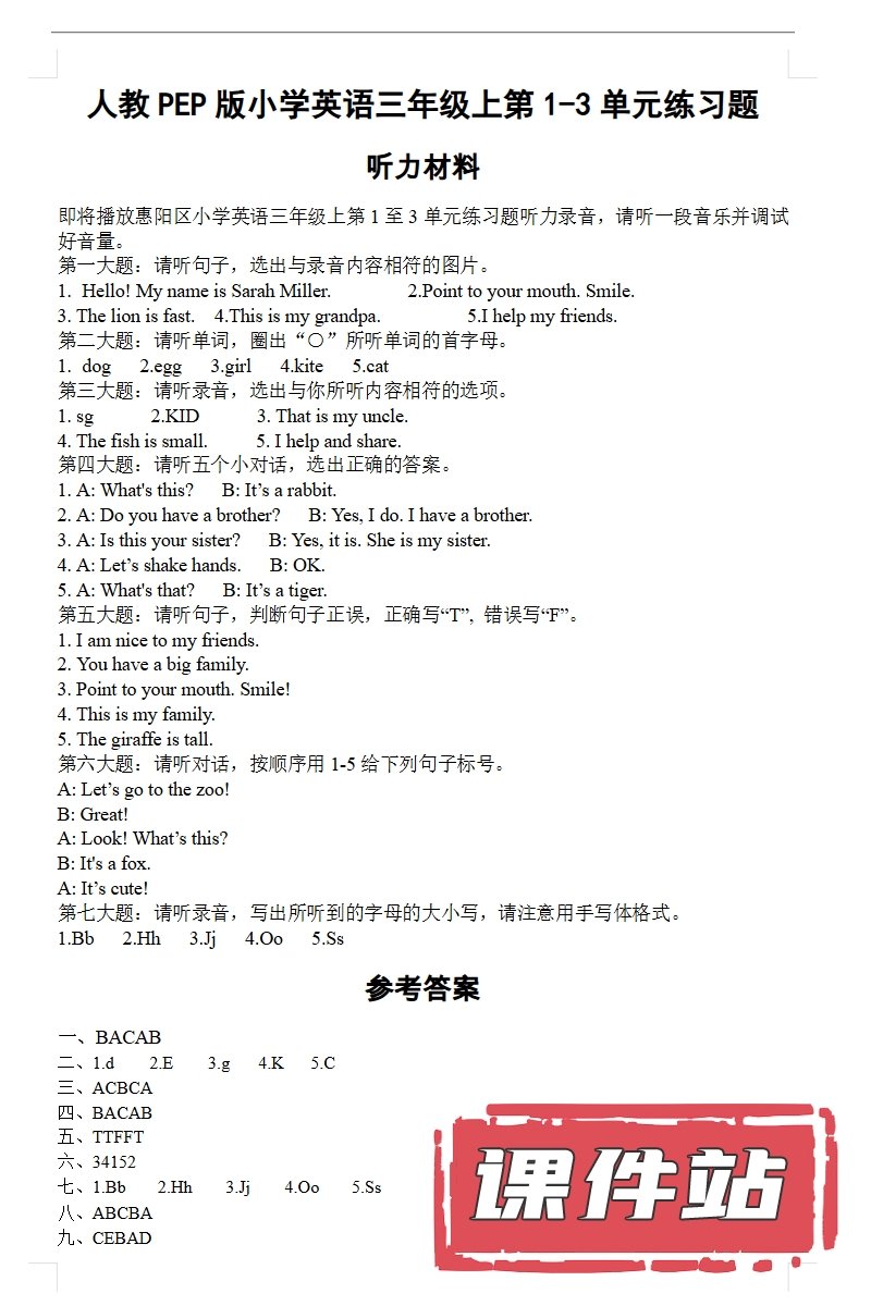【打包下载】人教版小学英语三年级上册教学资源