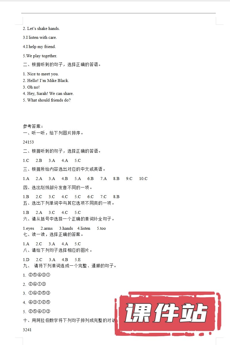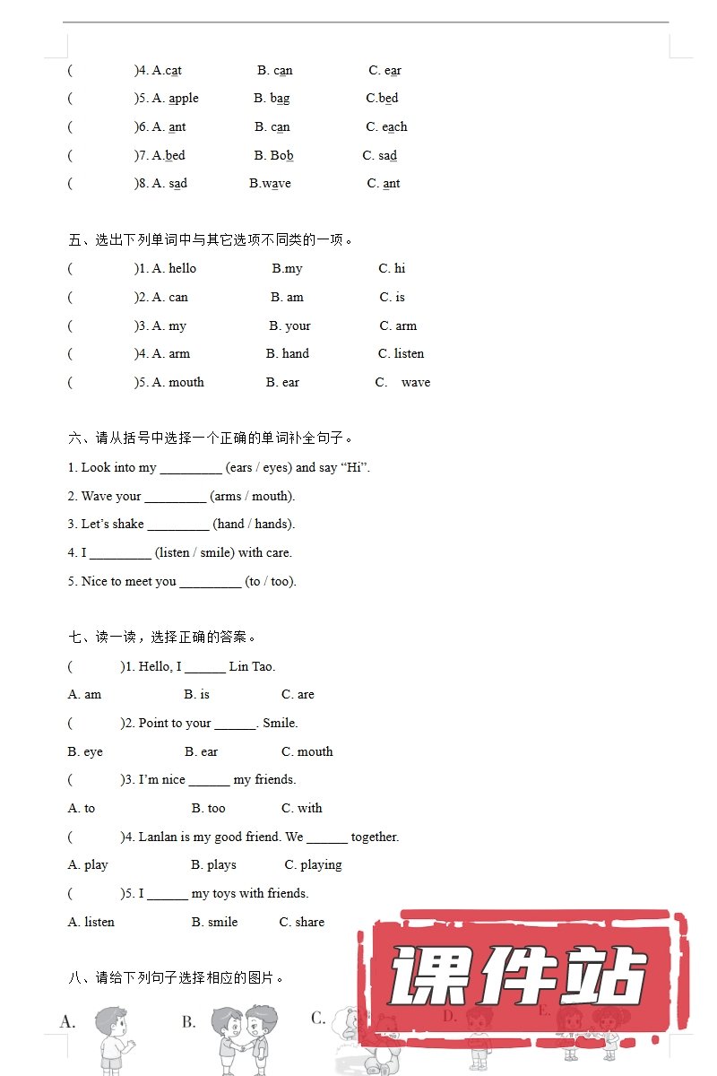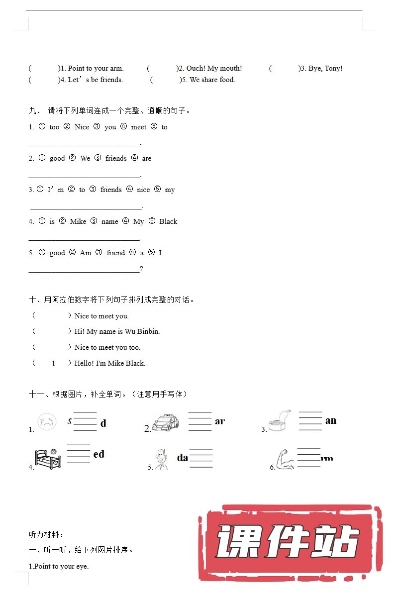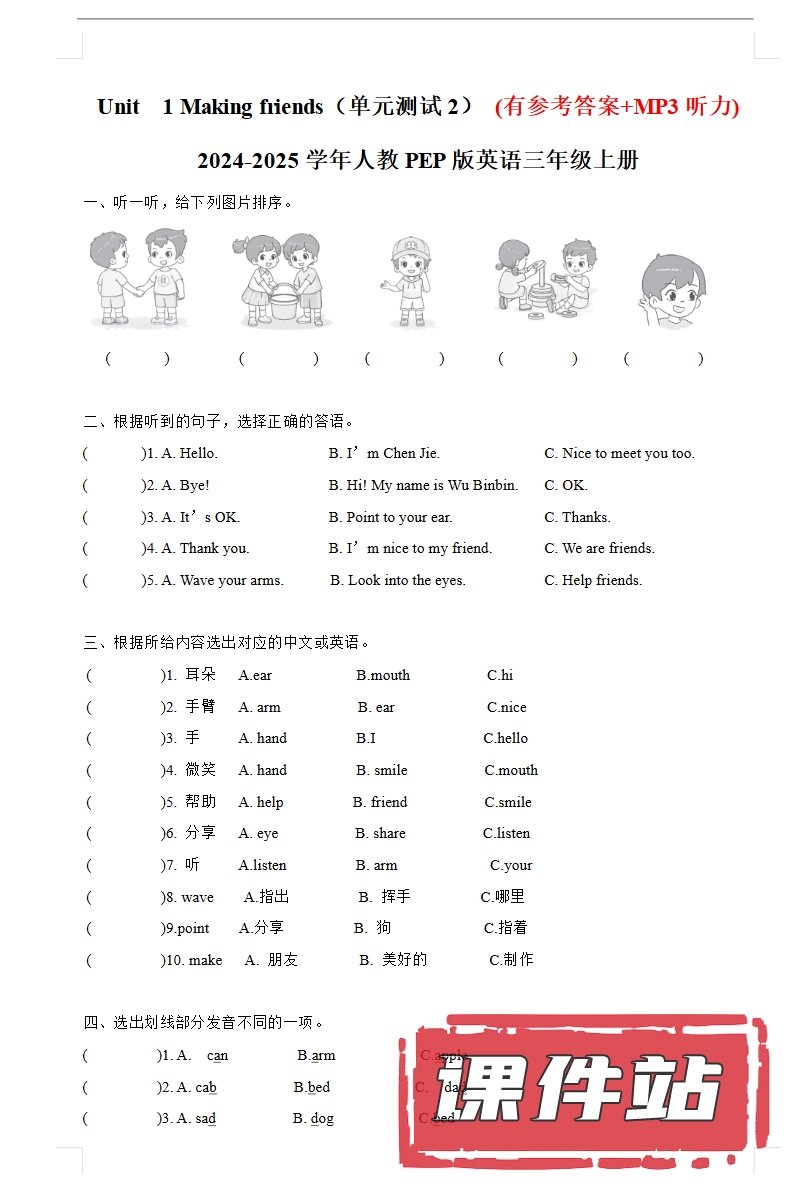 【打包下载】人教版小学英语三年级上册教学资源