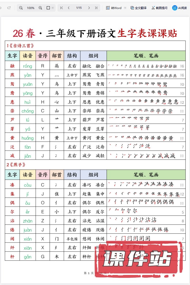【打包下载】部编版三年级语文下册教学资源